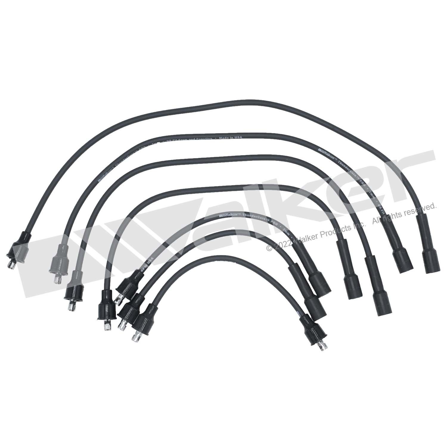 - Walker Products ThunderCore PRO Wire Set is precision manufactured from premium components in an ISO9001 certified facility in the USA. It is designed to provide outstanding performance and is manufactured to meet or exceed all Original Equipment Manufacturer (OEM) specifications and test requirements. Walker’s wire set is manufactured with hi-temp OE quality silicone boots and tips, stainless steel terminals, and tubes. It is also supplied with a packet of dielectric grease. Walker is committed to meeting or exceeding the Original Equipment Manufacturer (OEM) or equivalent standards and specifications. This effort is backed by Walkers own manufacturing, product management and engineering expertise. © 2024 Walker Products Inc. All rights reserved.
