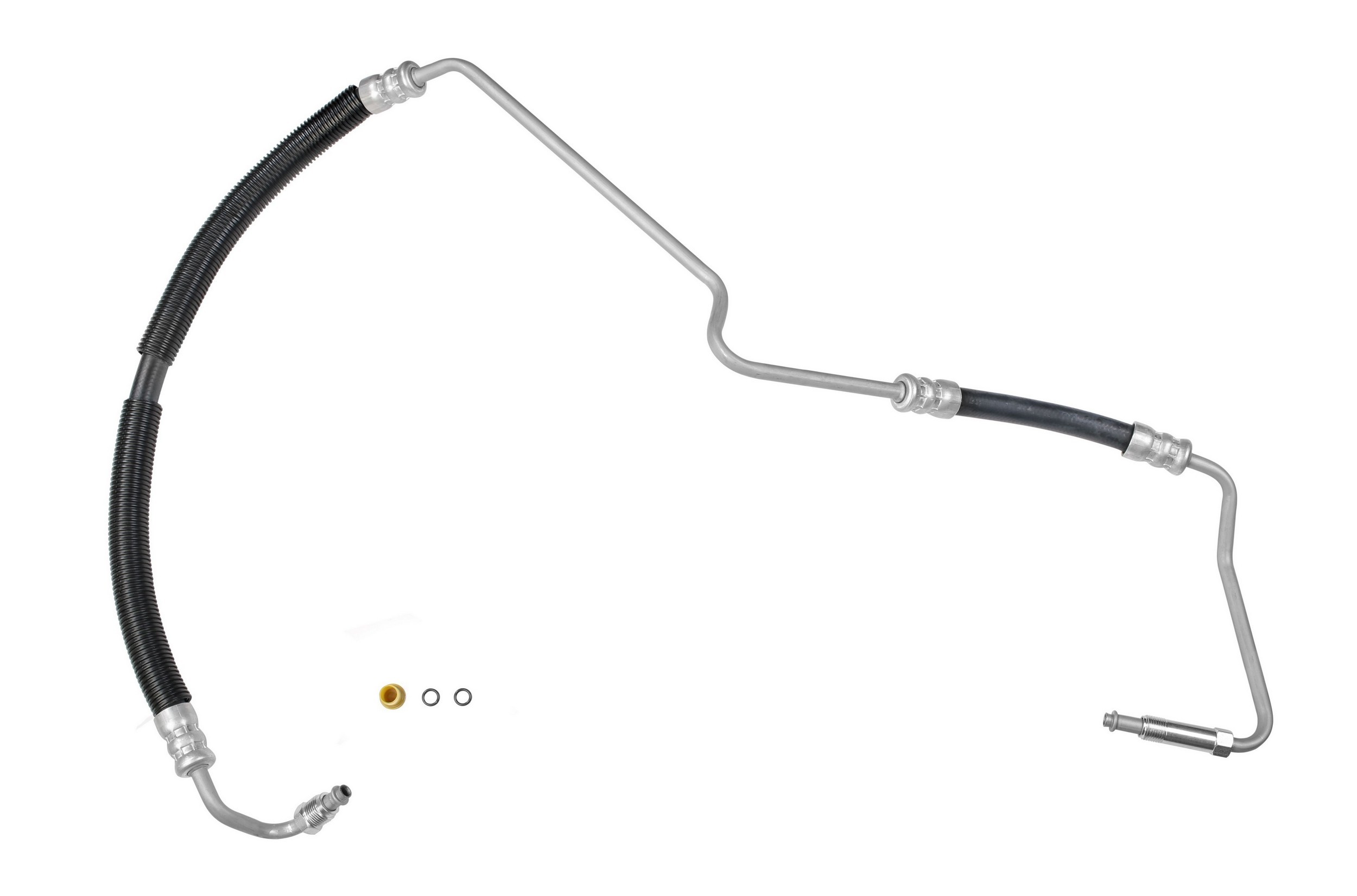 - The Pressure and Return Hoses are pre-assembled with brackets, providing easy installation and reduced labor time compared to replacement versions sold as individual hoses.