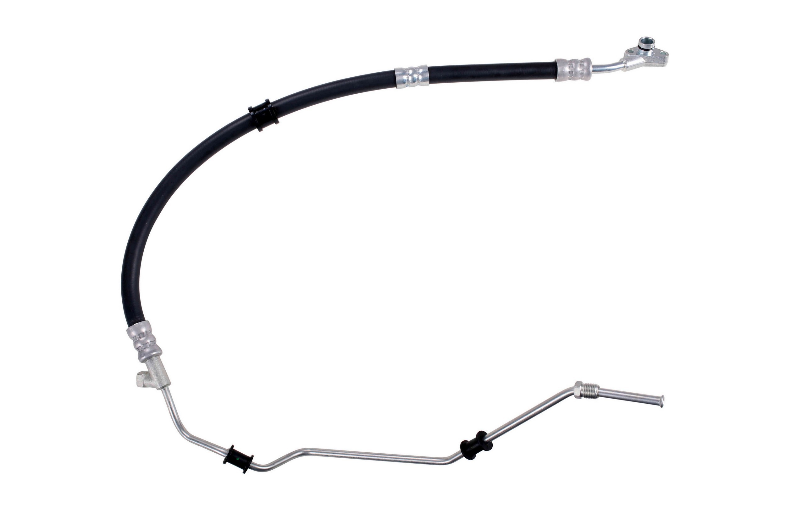 - The Pressure and Return Hoses are pre-assembled with brackets, providing easy installation and reduced labor time compared to replacement versions sold as individual hoses.
