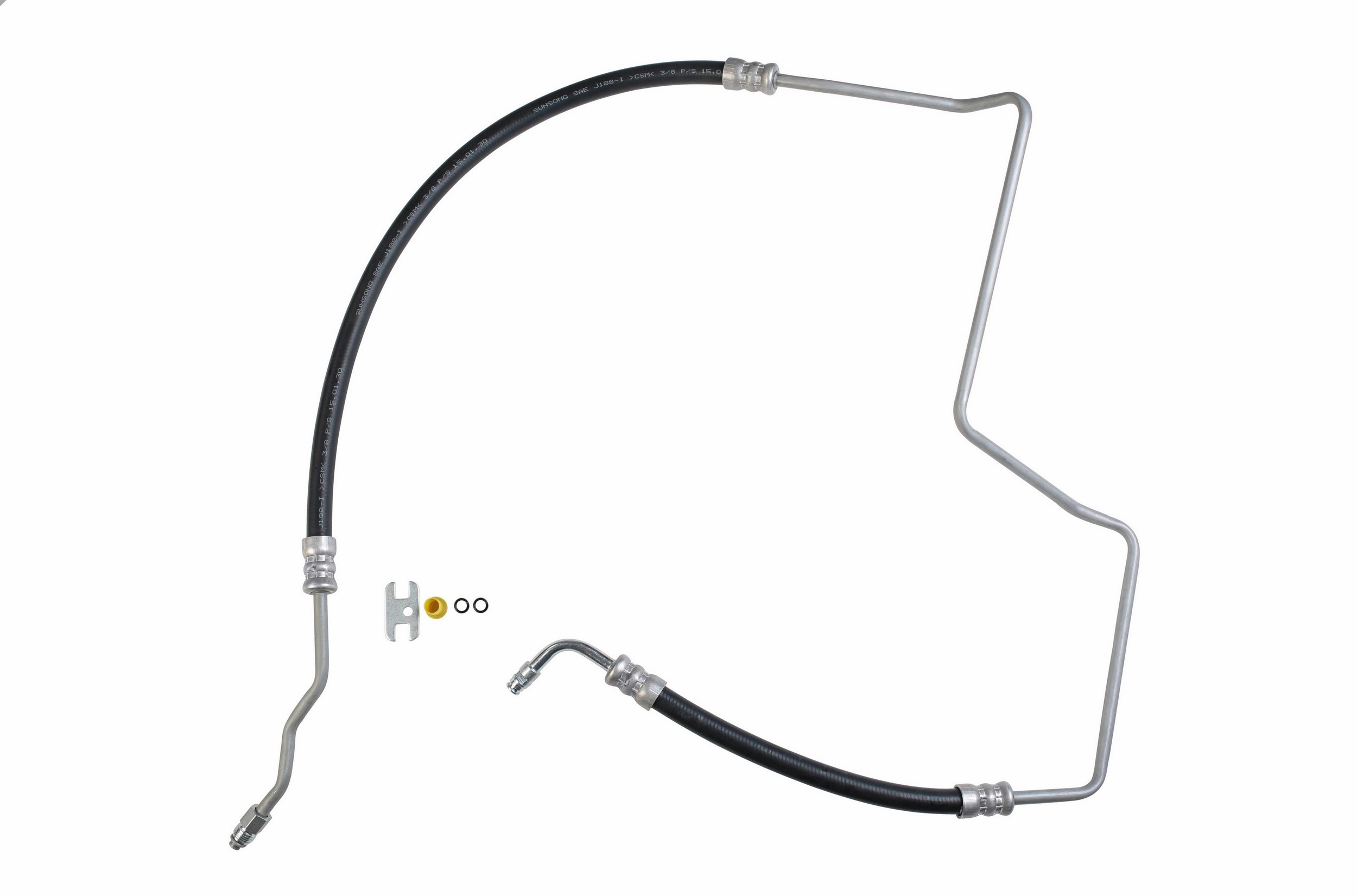 - The Pressure and Return Hoses are pre-assembled with brackets, providing easy installation and reduced labor time compared to replacement versions sold as individual hoses.