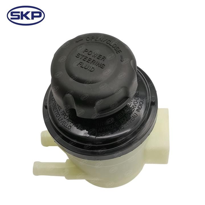 - The SKP Power Steering Reservoir is a replacement part for your vehicle's hydraulic steering system. It stores the power steering fluid and features markings to monitor the fluid level. This reservoir is manufactured to meet or exceed OEM specifications for quality and fit.