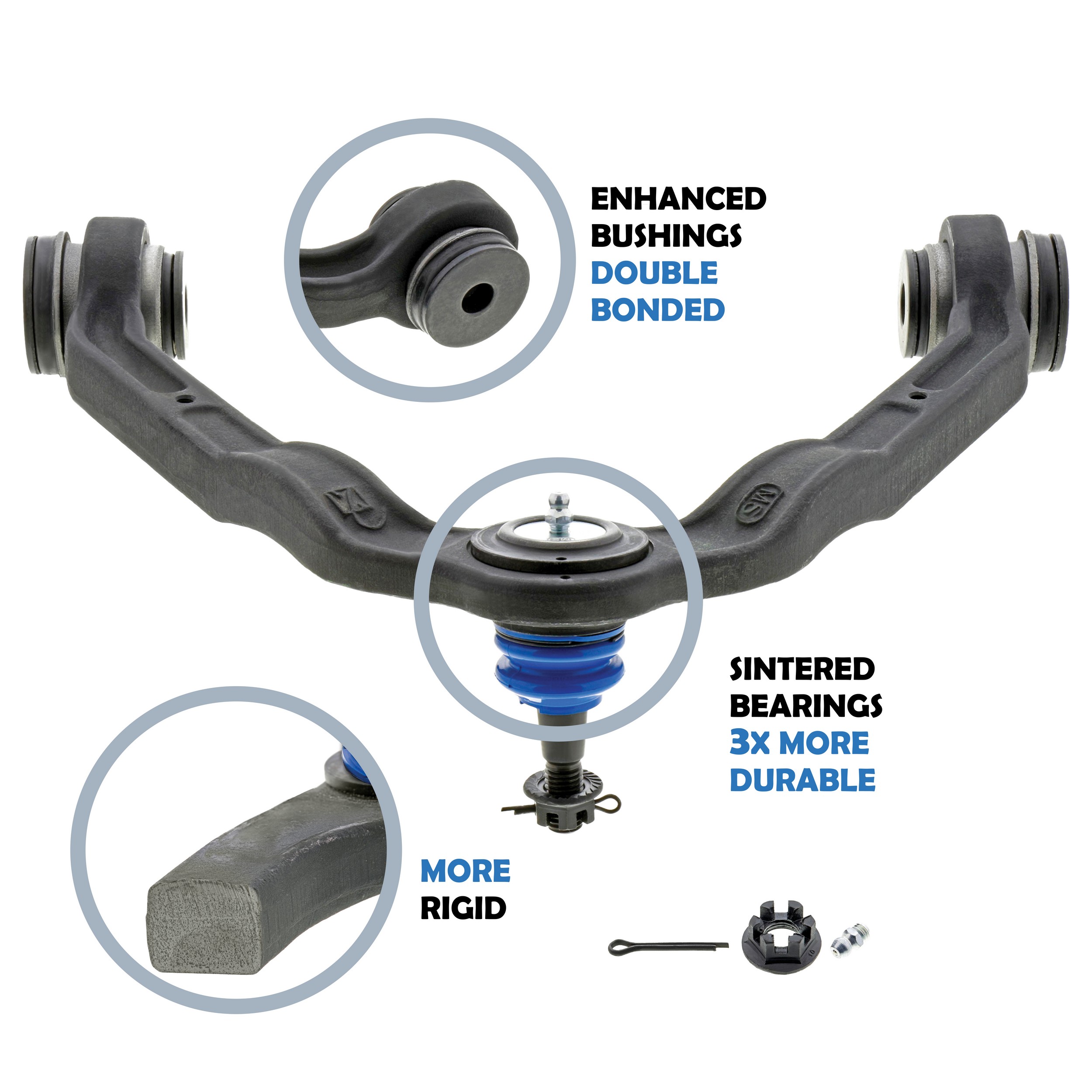 - STRONGER BUILD: Rely on superior strength with a forged steel control arm with a thicker cross section for added durability.