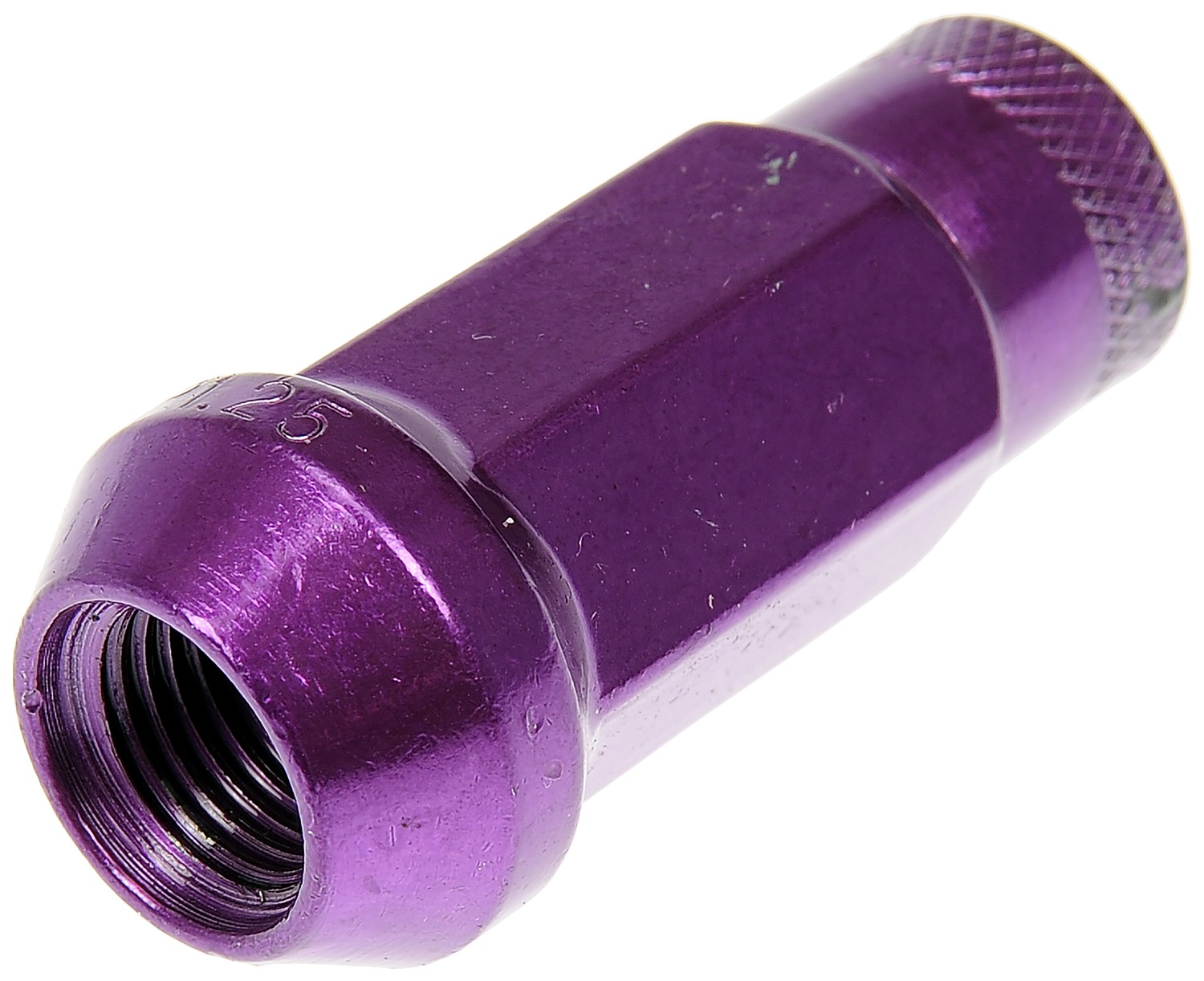 - Upgrade the look of your wheel hardware with these racing-inspired lug nuts. Designed with an open end to accommodate long studs, these nuts are finished with a knurled texture for better grip when spinning them by hand.