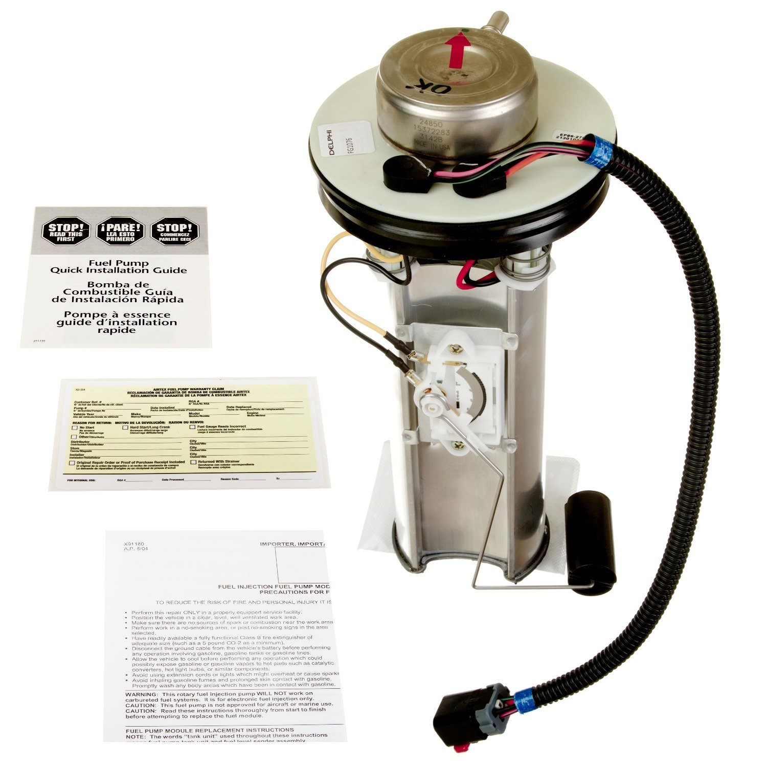 | Package Contents | Fuel pump module assembly w/float arm, instruction sheet |