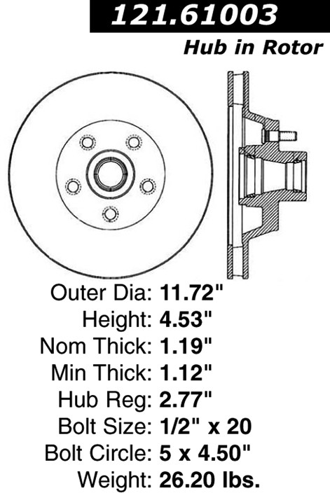 Centric® 121.61003 Disc Brake Rotor and Hub Assembly
