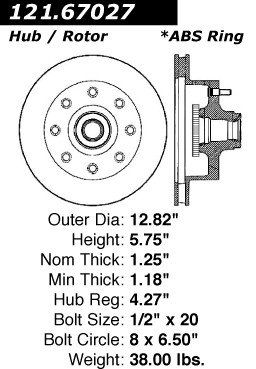 Centric® 121.67027 Disc Brake Rotor and Hub Assembly