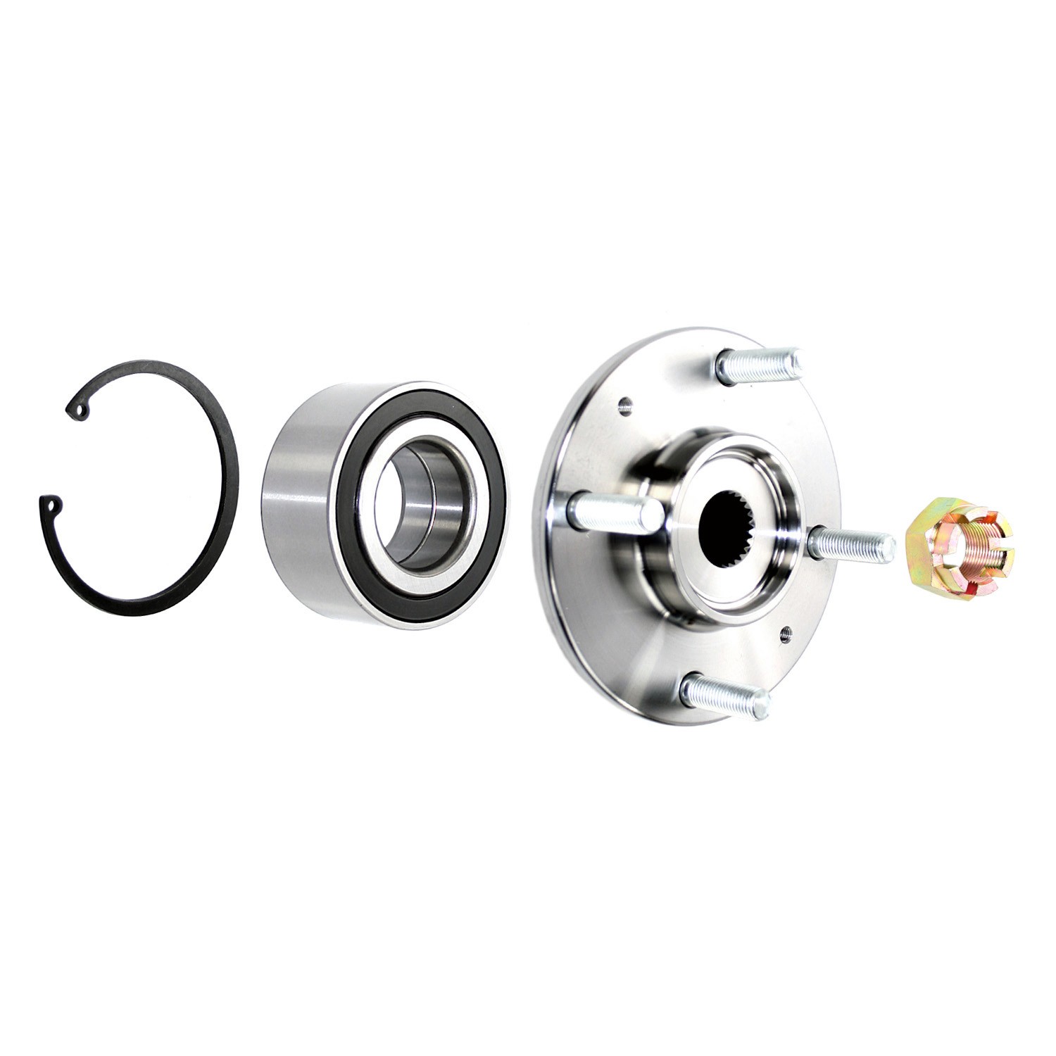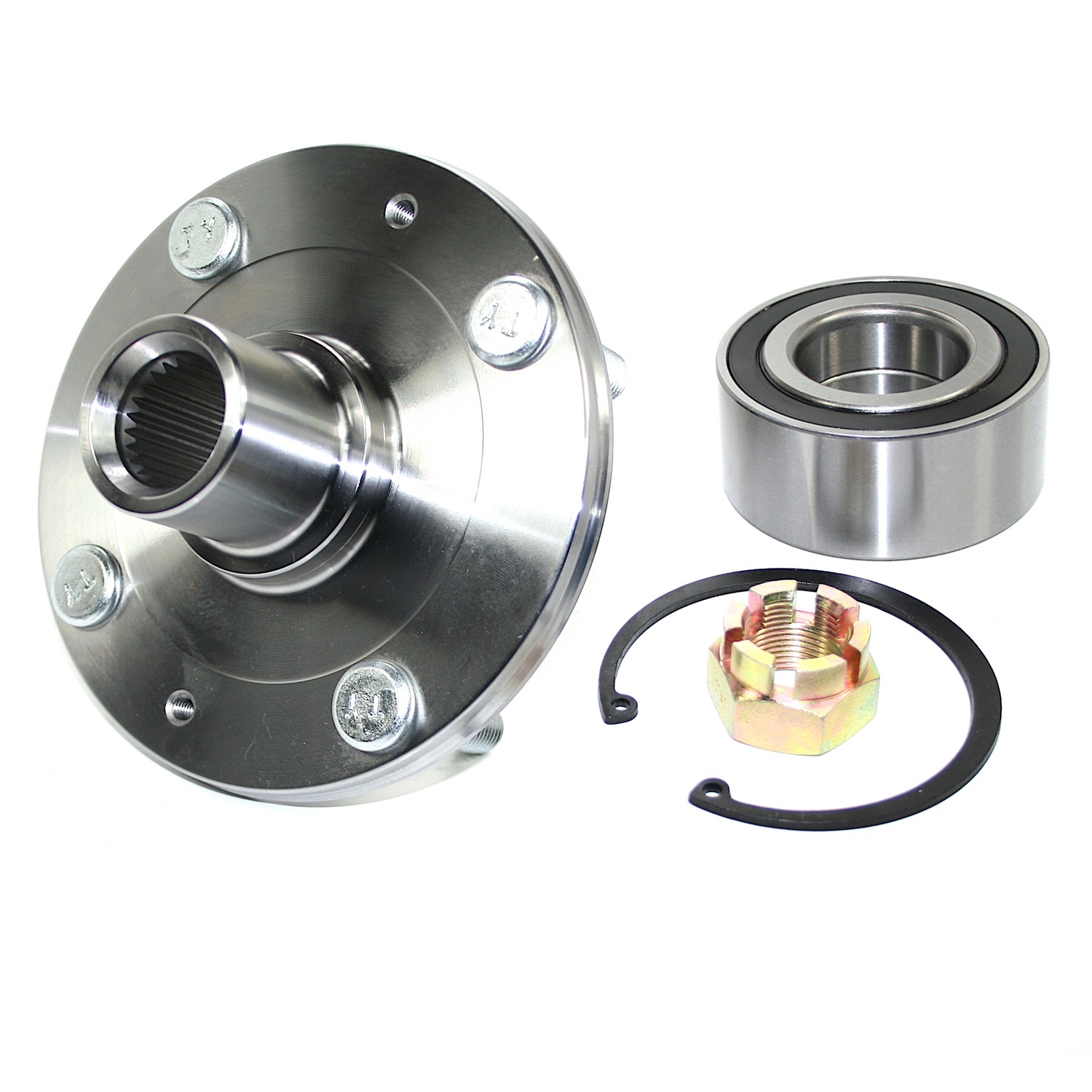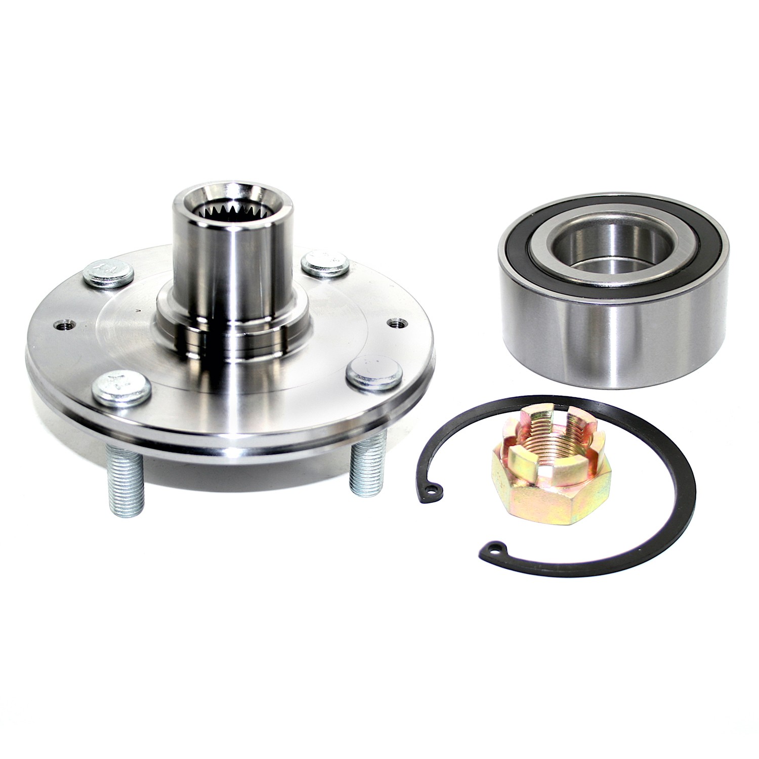 - Wheel Hub Repair Kits include all of the components required to restore the wheel hub and bearing to optimum condition. Kits include: New Wheel Hub, Wheel Bearing, (When applicable: Wheel Studs, Retaining Ring, Axle nut, Wheel Seal).