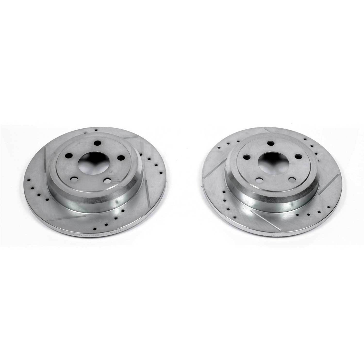 - Power Stop drilled and slotted rotors provide a bolt-on upgrade for improved brake cooling and performance. Precision cross-drilled for maximum cooling and maximum performance during extreme conditions; rounded slots sweep away gasses, dust, and moisture to keep a clean friction contact patch on the rotor surface. Silver zinc dichromate plating resists rust and corrosion. With a direct OE fit, there are no special modifications needed.