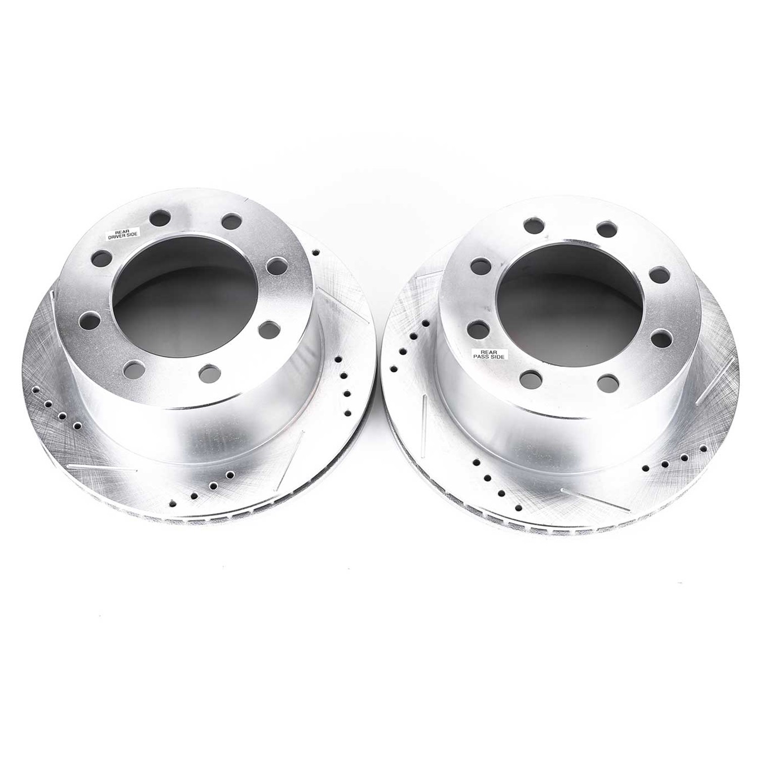 - Power Stop drilled and slotted rotors provide a bolt-on upgrade for improved brake cooling and performance. Precision cross-drilled for maximum cooling and maximum performance during extreme conditions; rounded slots sweep away gasses, dust, and moisture to keep a clean friction contact patch on the rotor surface. Silver zinc dichromate plating resists rust and corrosion. With a direct OE fit, there are no special modifications needed.