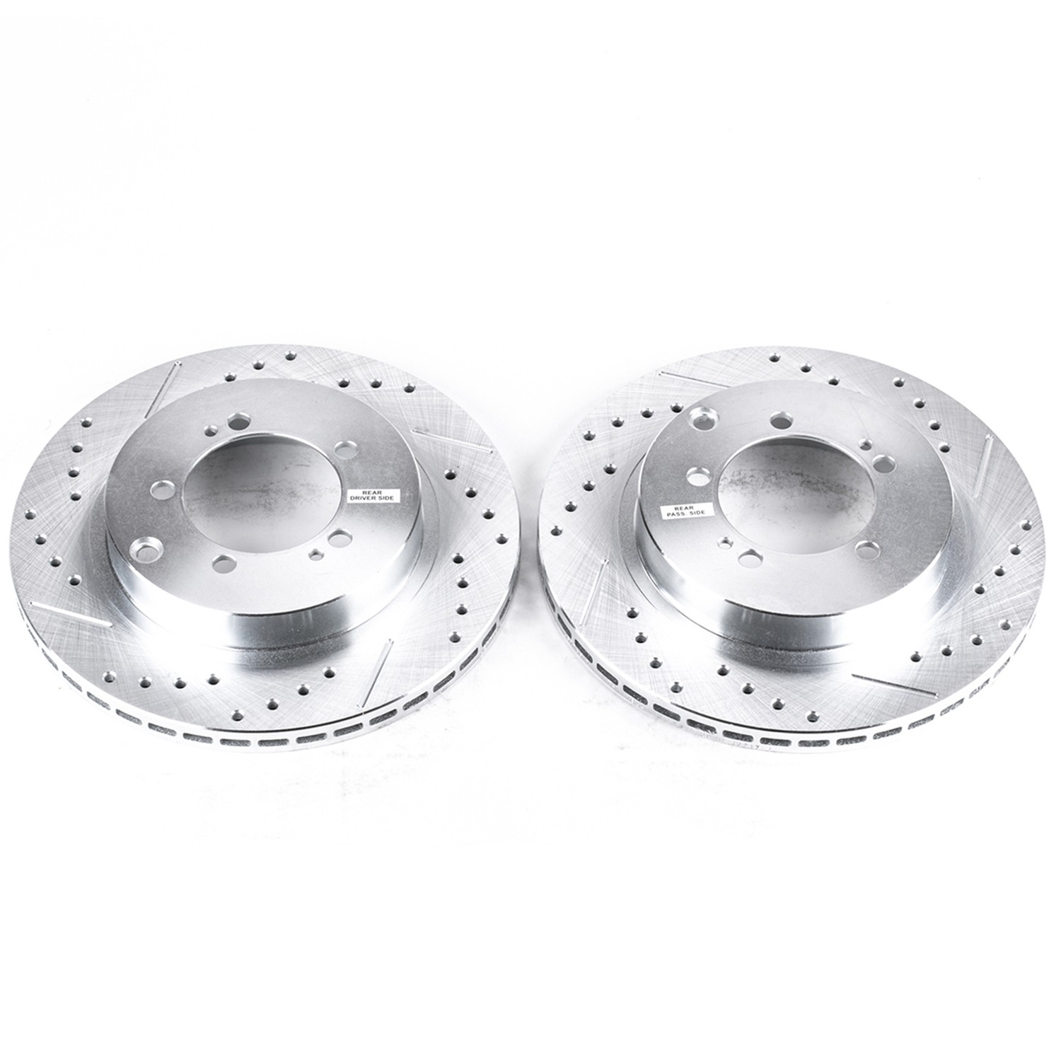 - Power Stop drilled and slotted rotors provide a bolt-on upgrade for improved brake cooling and performance. Precision cross-drilled for maximum cooling and maximum performance during extreme conditions; rounded slots sweep away gasses, dust, and moisture to keep a clean friction contact patch on the rotor surface. Silver zinc dichromate plating resists rust and corrosion. With a direct OE fit, there are no special modifications needed.