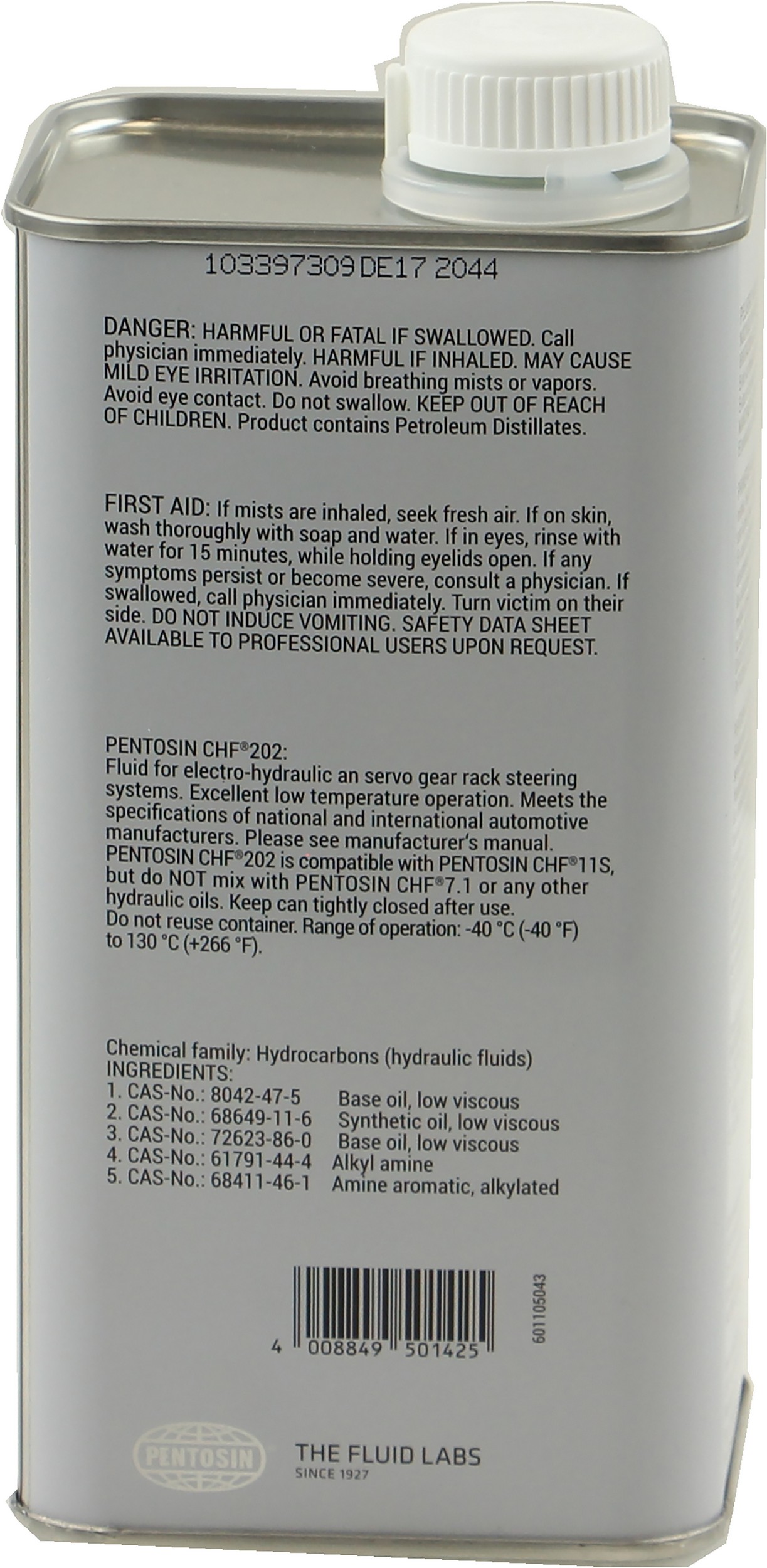 - Pentosin CHF 202 Hydraulic Fluid. Compatible with CHF 11S.