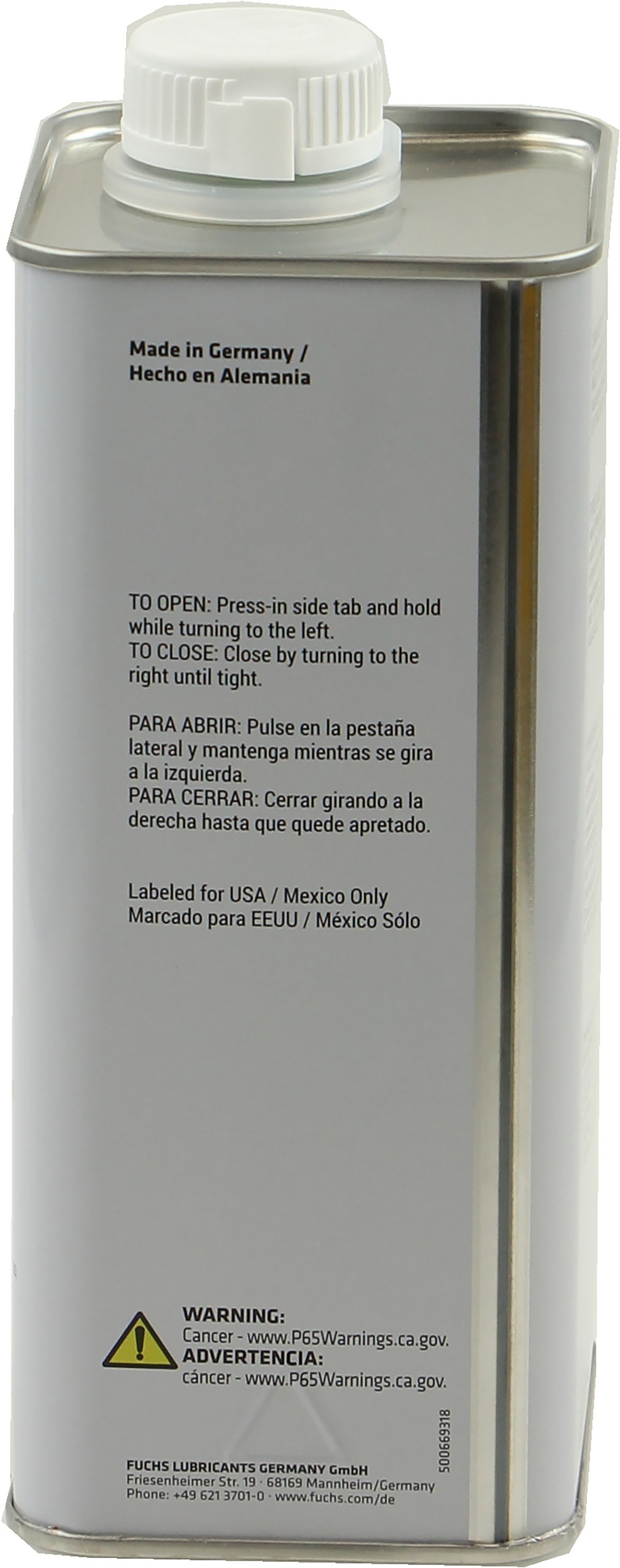 | Prop 65 - Warning Label (ES) | Advertencia - cancer www.p65warnings.ca.gov |