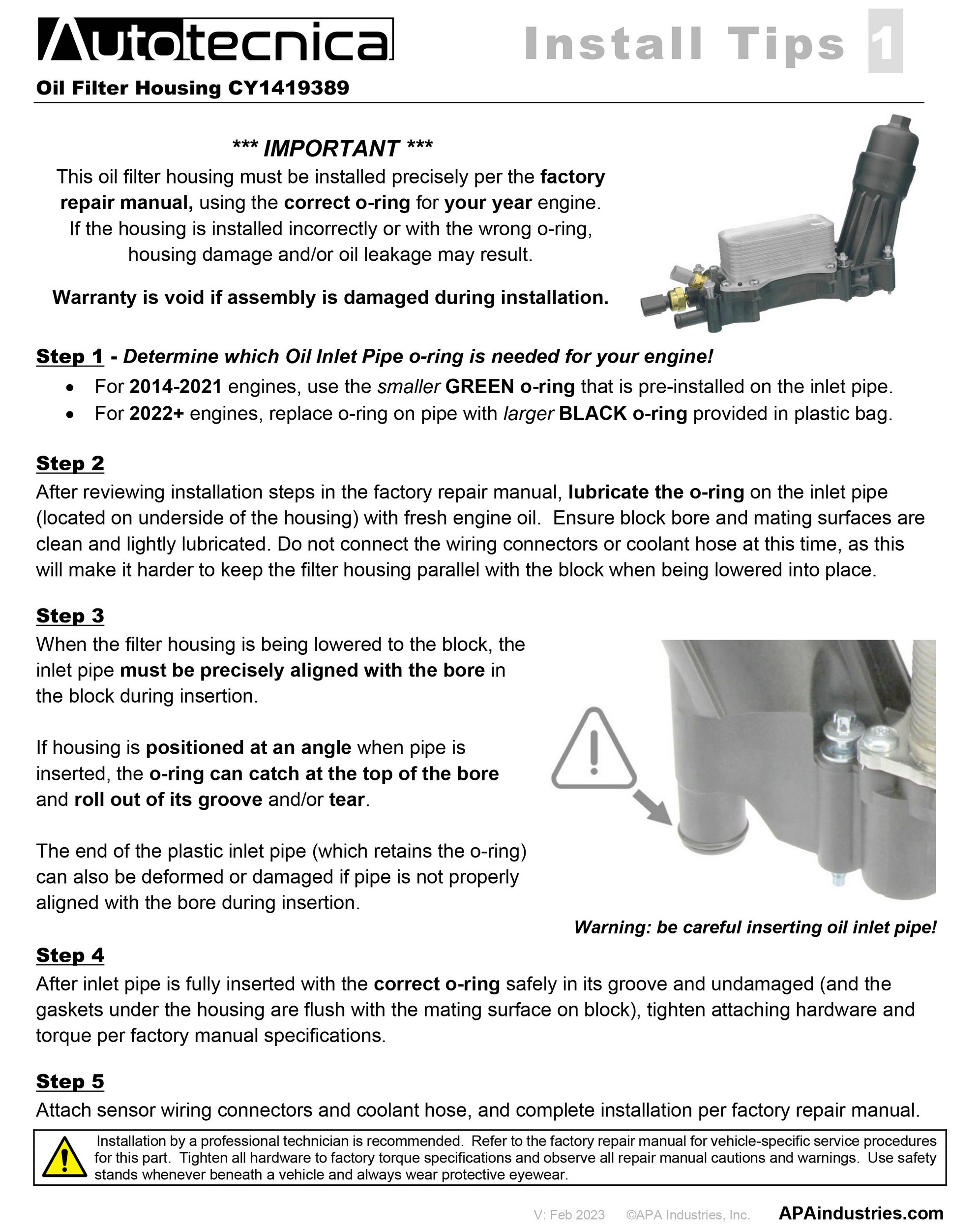 - Manufactured to OE oil filter housing dimensions for easy bolt-on installation and reliable sealing