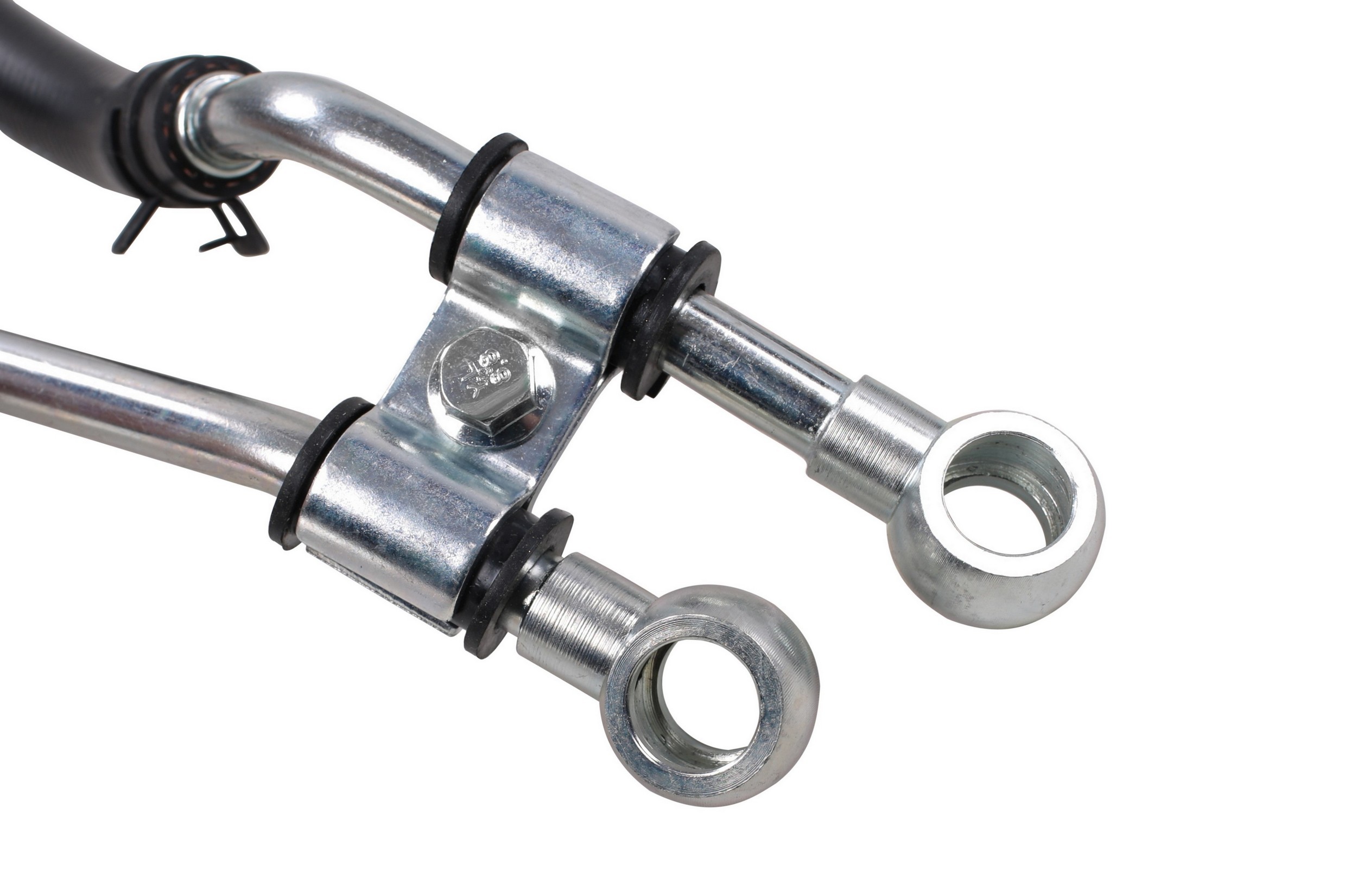 - The Pressure and Return Hoses are pre-assembled with brackets, providing easy installation and reduced labor time compared to replacement versions sold as individual hoses.