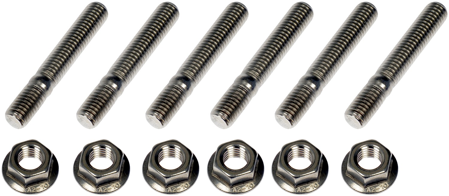 • The factory-style fasteners used to secure the exhaust manifold to the pipe flange on certain vehicles are prone to cracking and failure from extreme thermal cycles and corrosion. This convenient Dorman OE FIX hardware kit contains six application-specific M10-1.5 studs and nuts made of 100 percent stainless steel that provide superior strength and resistance to corrosion. These fasteners are precision-manufactured to match the fit and function of the original equipment hardware, and help ensure a professional and more durable repair. The kit contains the studs and nuts required to join both manifolds to the manifold flanges.