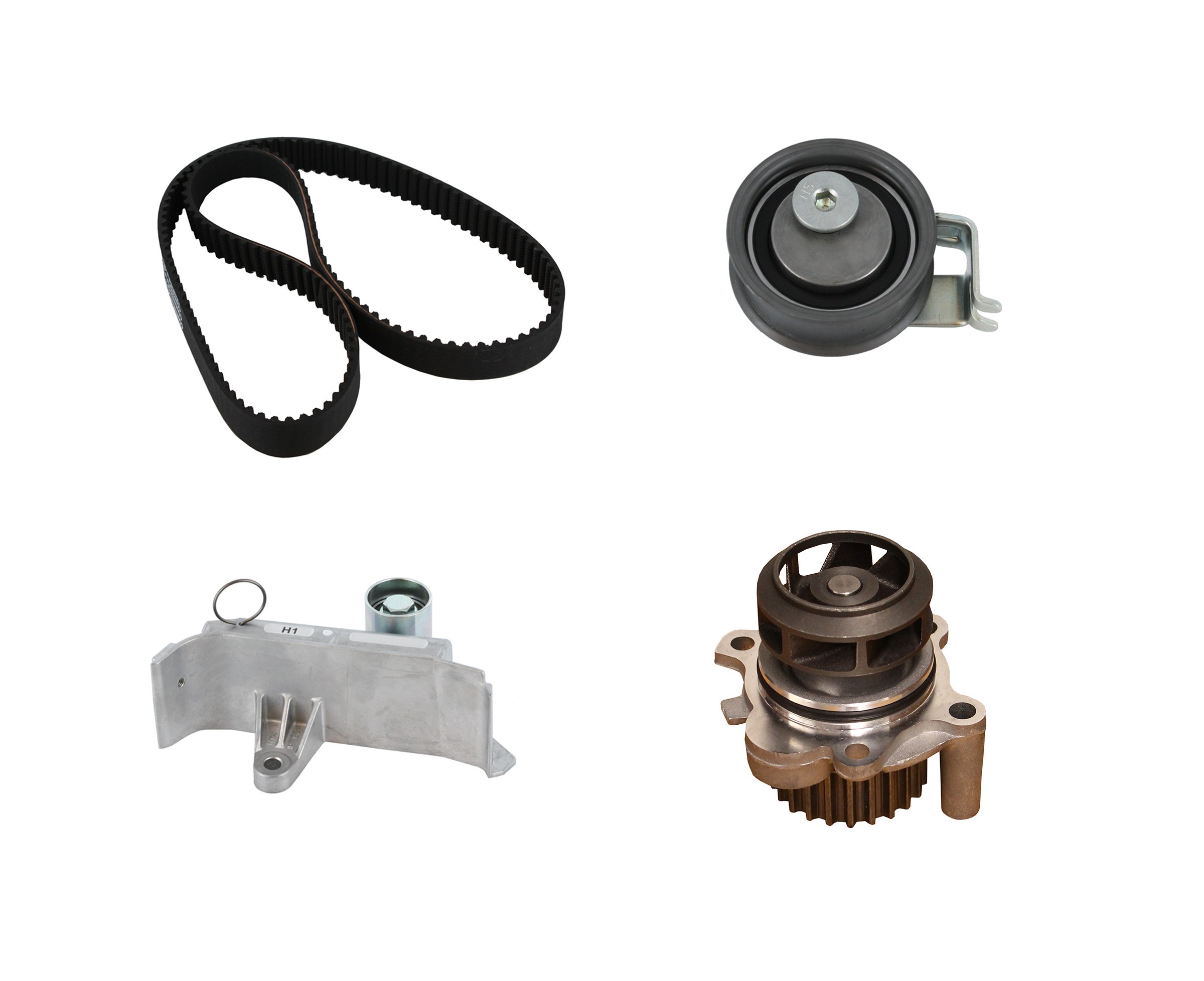 - Contains OEM-quality components including a water pump, belt(s), idlers, mech. tensioner, and OEM hyd. tensioner (where applicable). 'MI' suffix designates a metal impeller. A 'WH' designates a kit with a water pump housing.