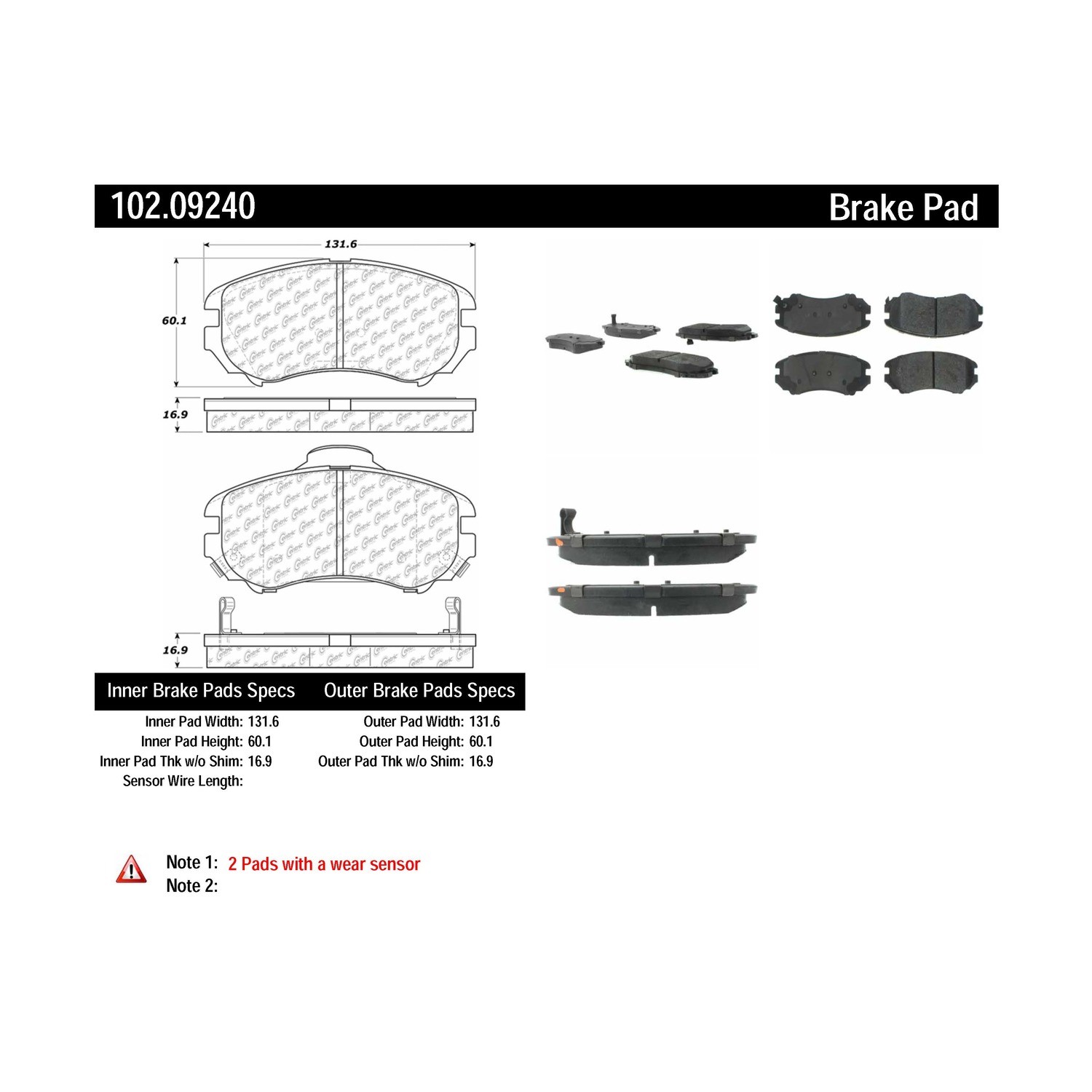 Centric® 102.09240 Disc Brake Pad Set