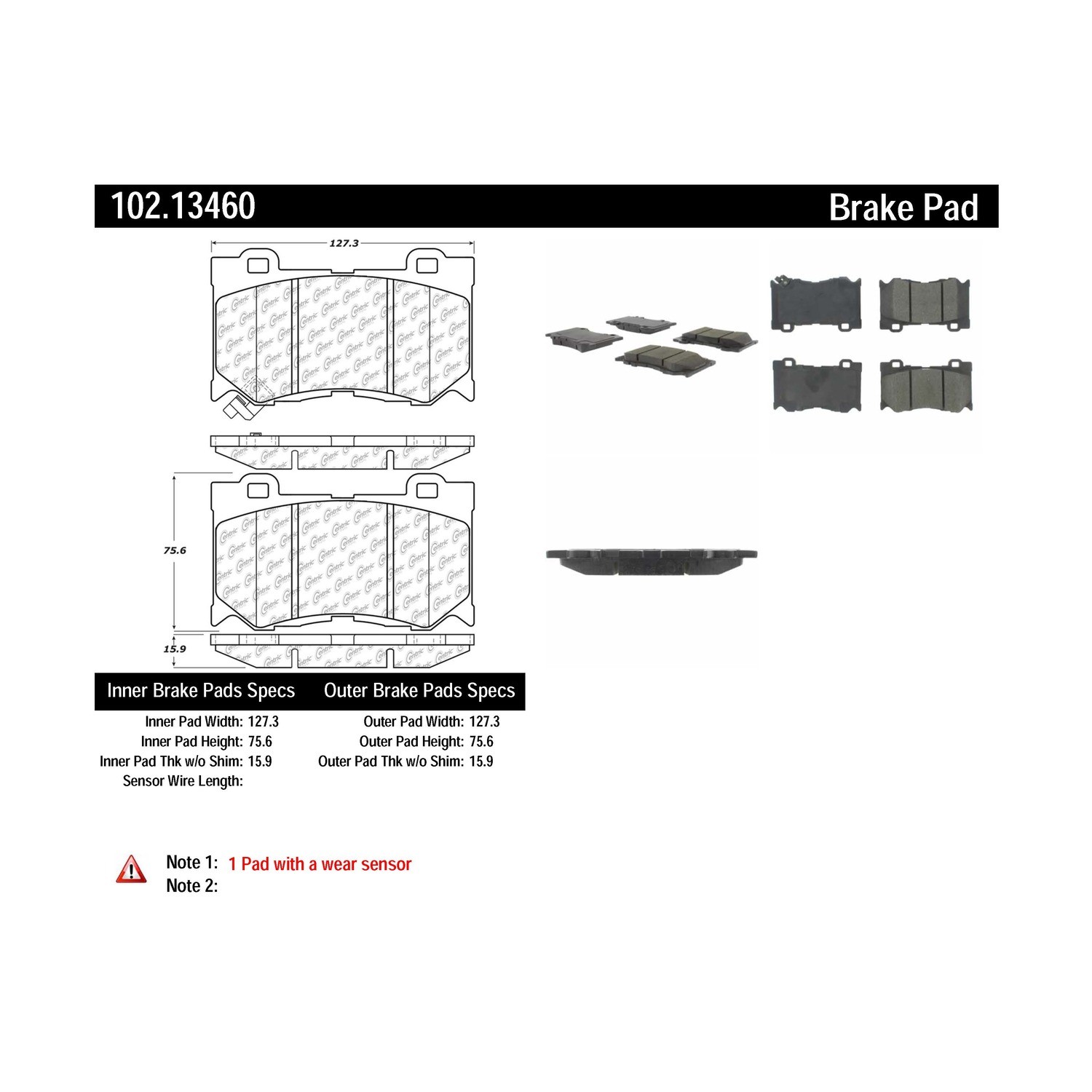Centric® 102.13460 Disc Brake Pad Set