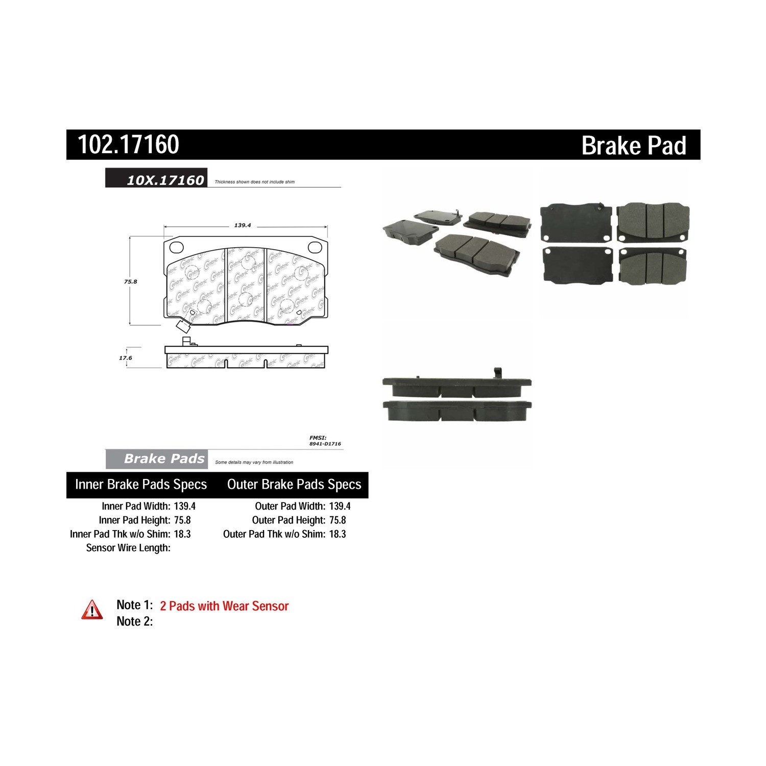 Centric® 102.17160 Disc Brake Pad Set