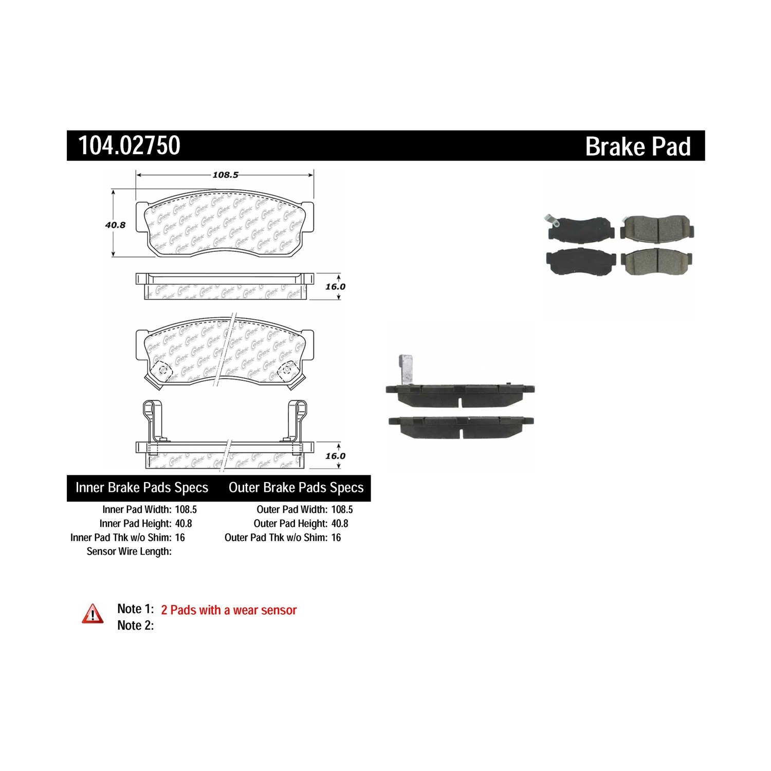 Centric® 104.02750 Disc Brake Pad Set