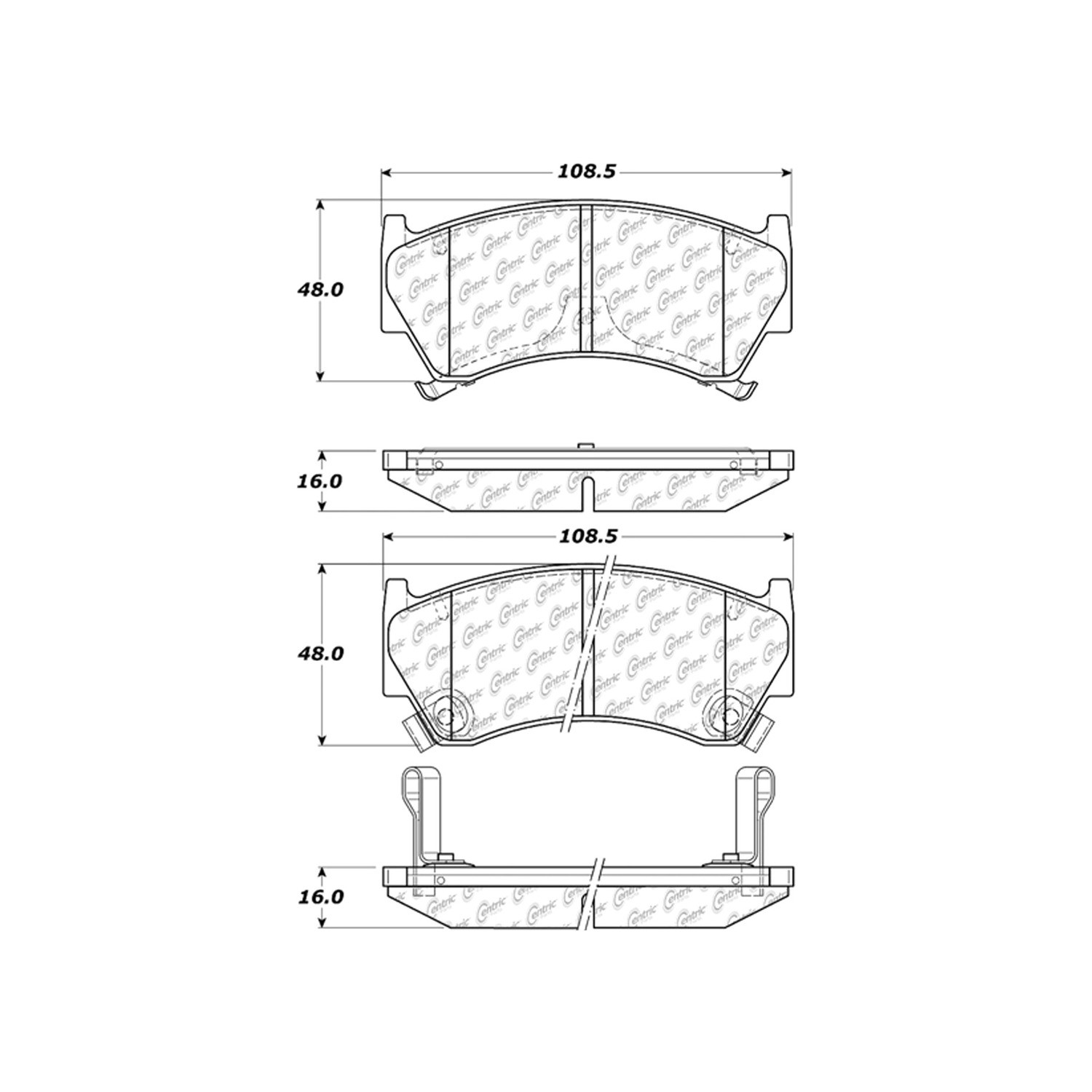 - Posi-Quiet extended, extended brake pad, Centric Parts, Centric, Posi-Quiet, brake pads, break pad