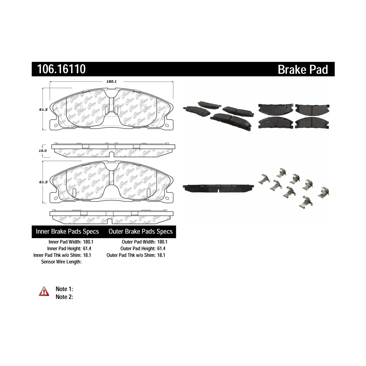 Centric® 106.16110 Disc Brake Pad Set