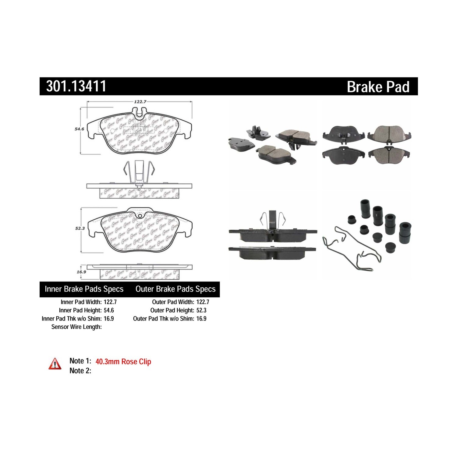 - Centric Premium Ceramic Pads with Shims and Hardware