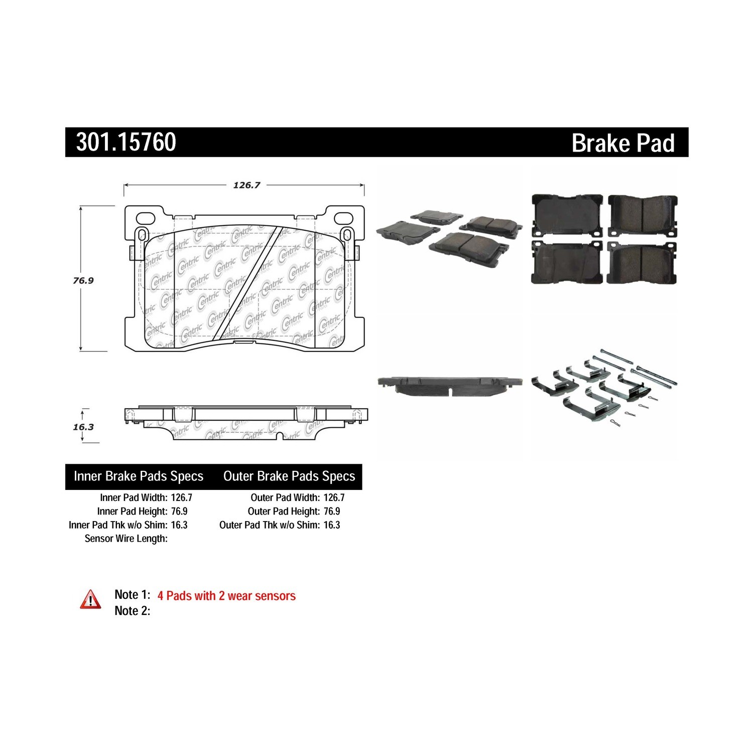 - Centric Premium Ceramic Pads with Shims and Hardware