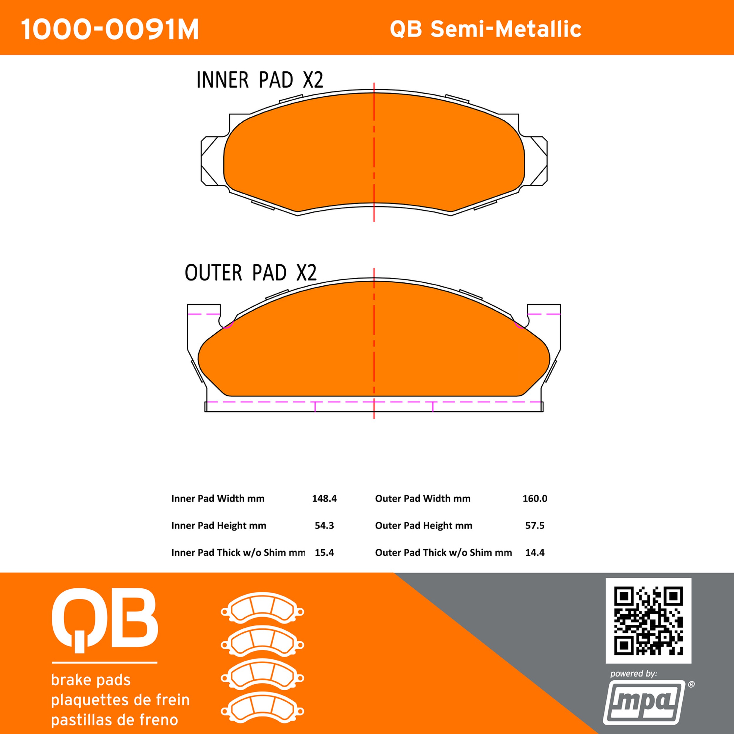 - QB Semi-Metallic Brake Pads