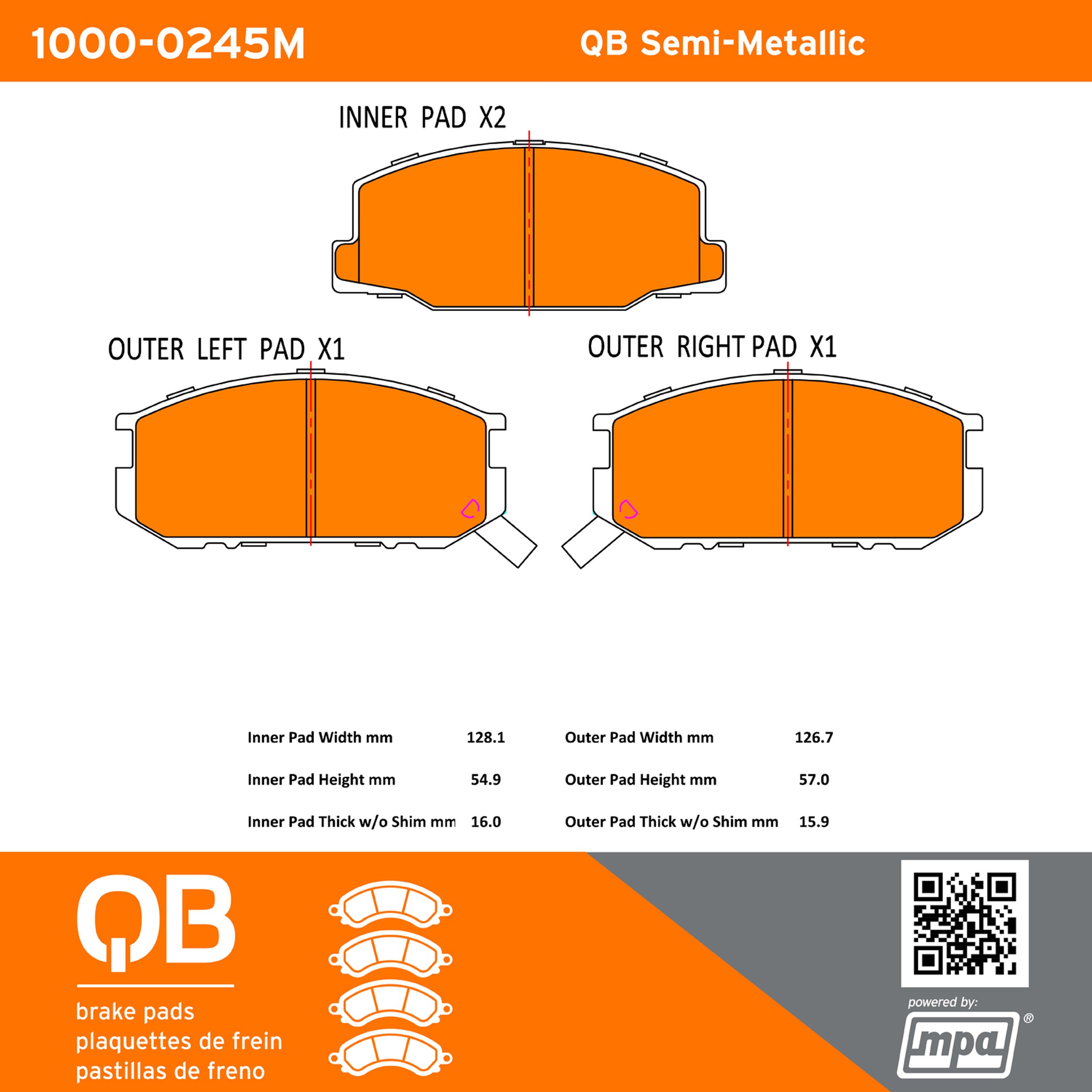 - QB Semi-Metallic Brake Pads