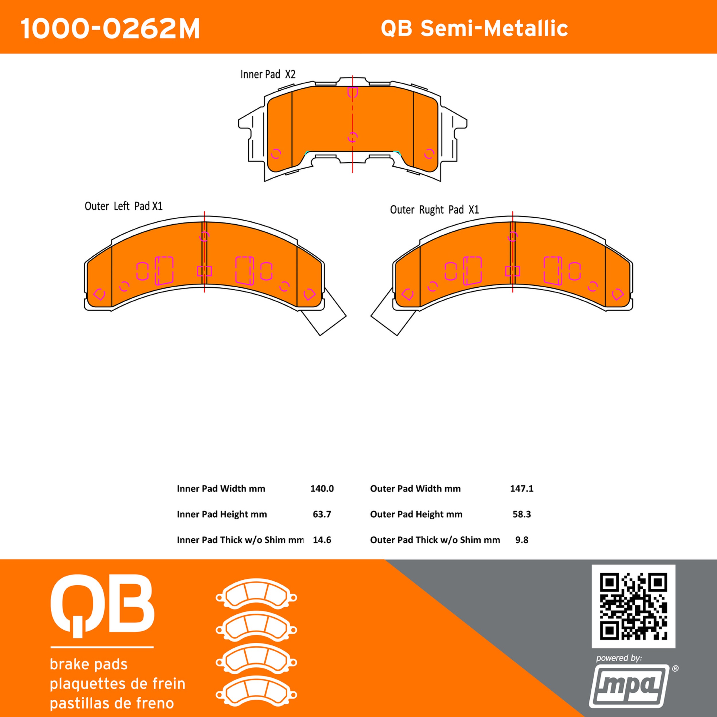 - QB Semi-Metallic Brake Pads