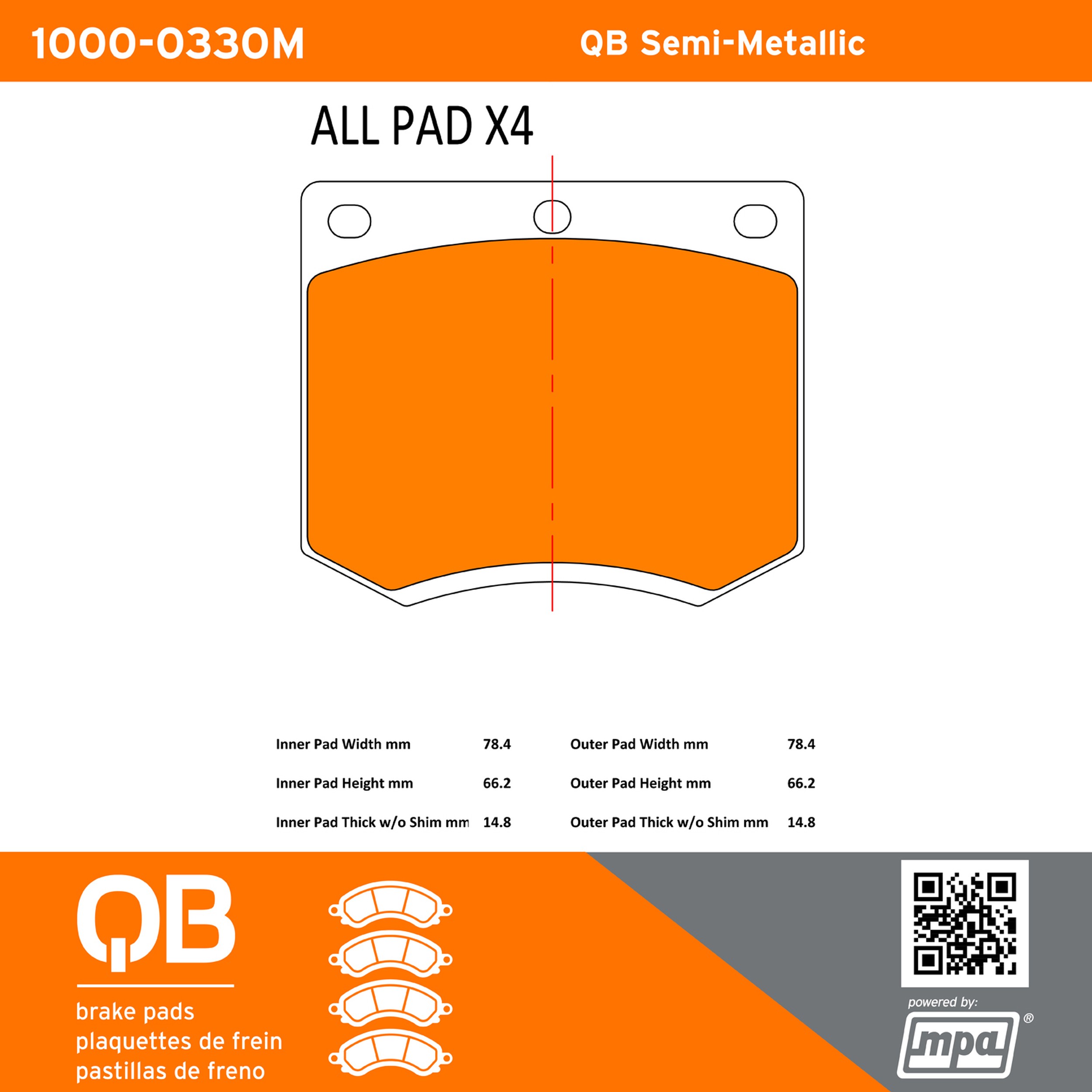 - QB Semi-Metallic Brake Pads