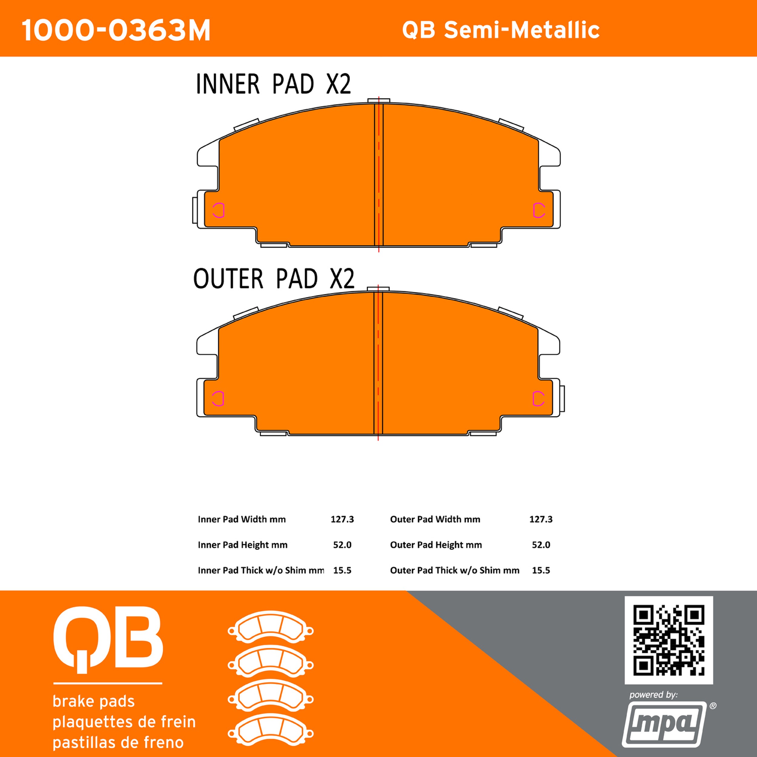 - QB Semi-Metallic Brake Pads