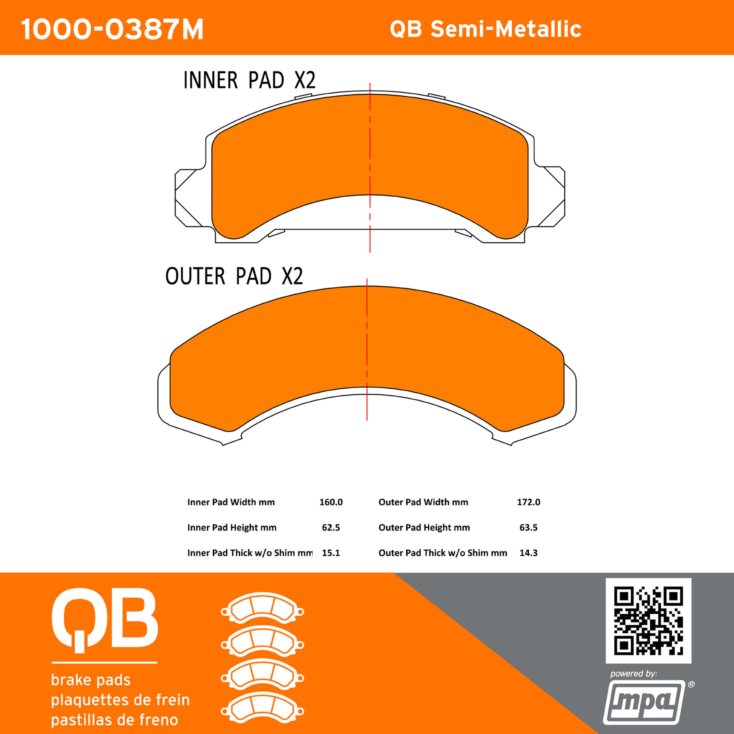 - QB Semi-Metallic Brake Pads