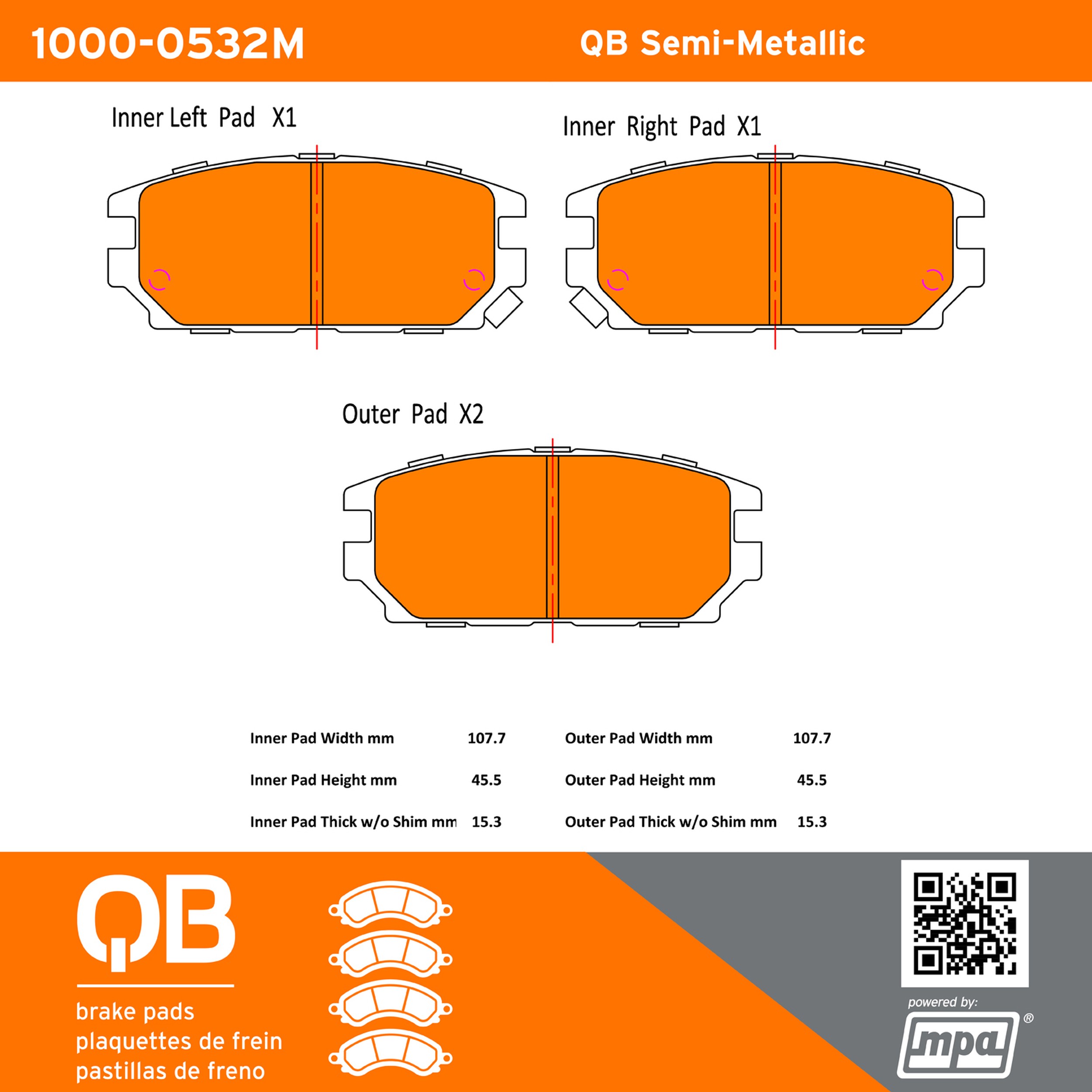 - QB Semi-Metallic Brake Pads