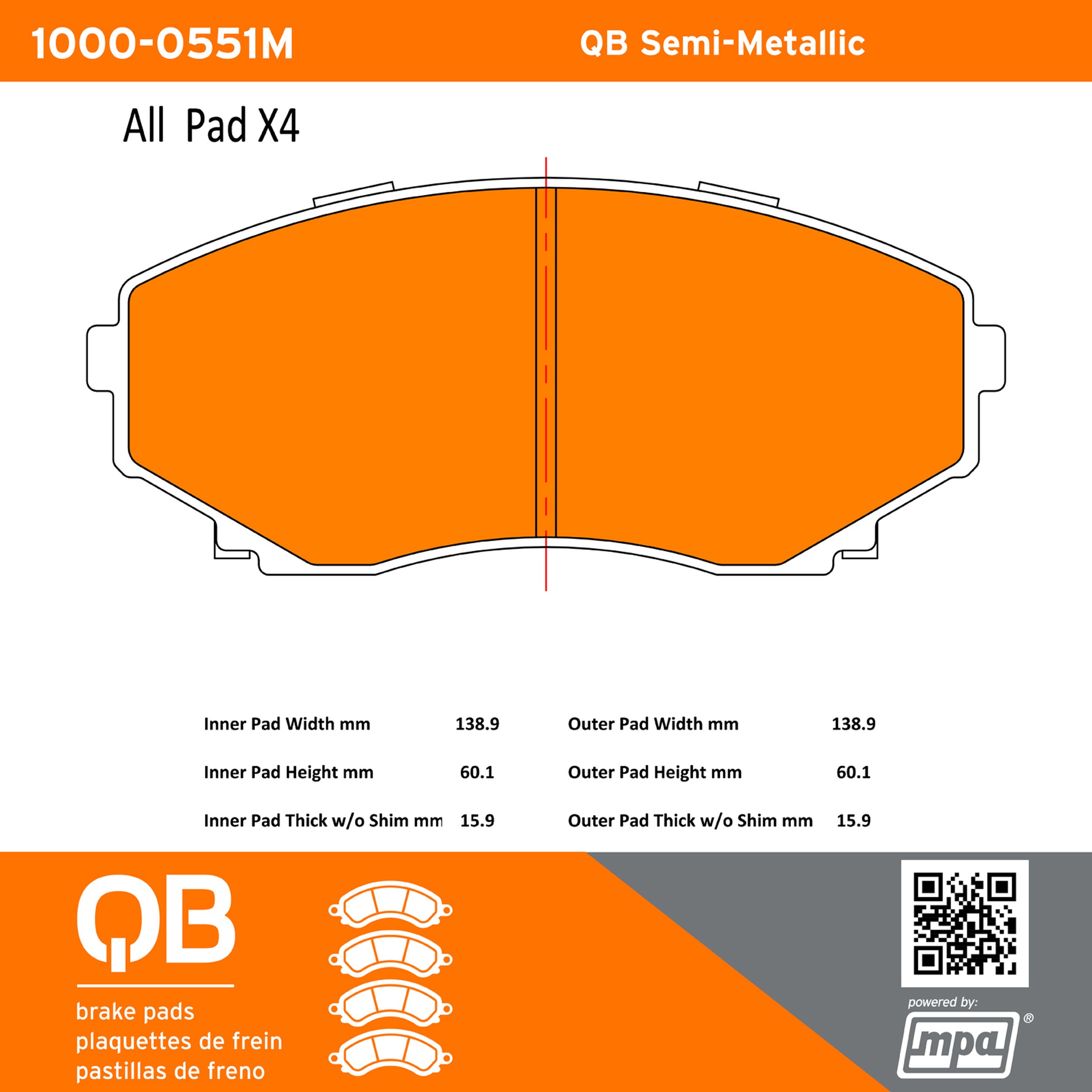• QB Brake pads deliver like-new stopping power with minimal brake dust and noise.