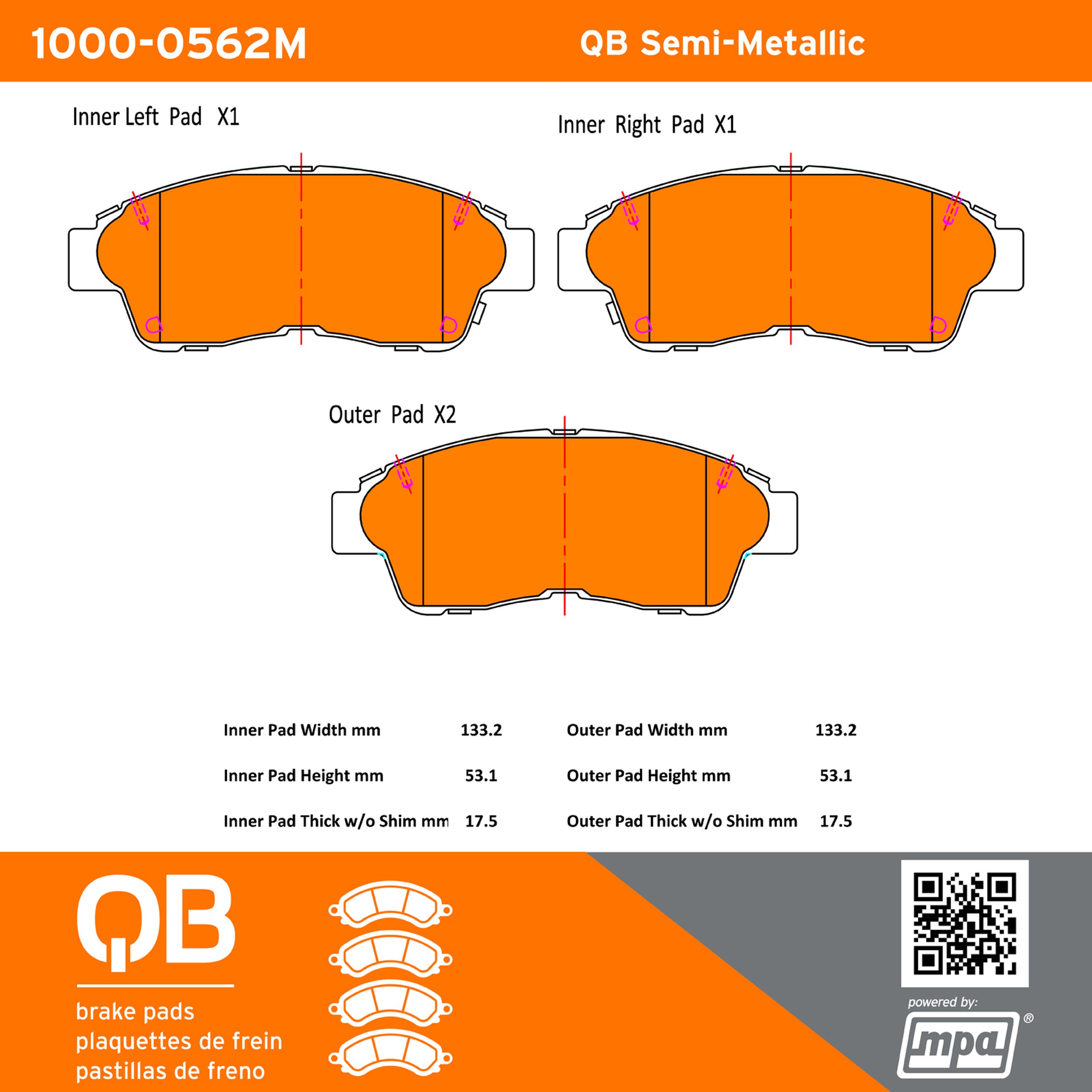 - QB Semi-Metallic Brake Pads