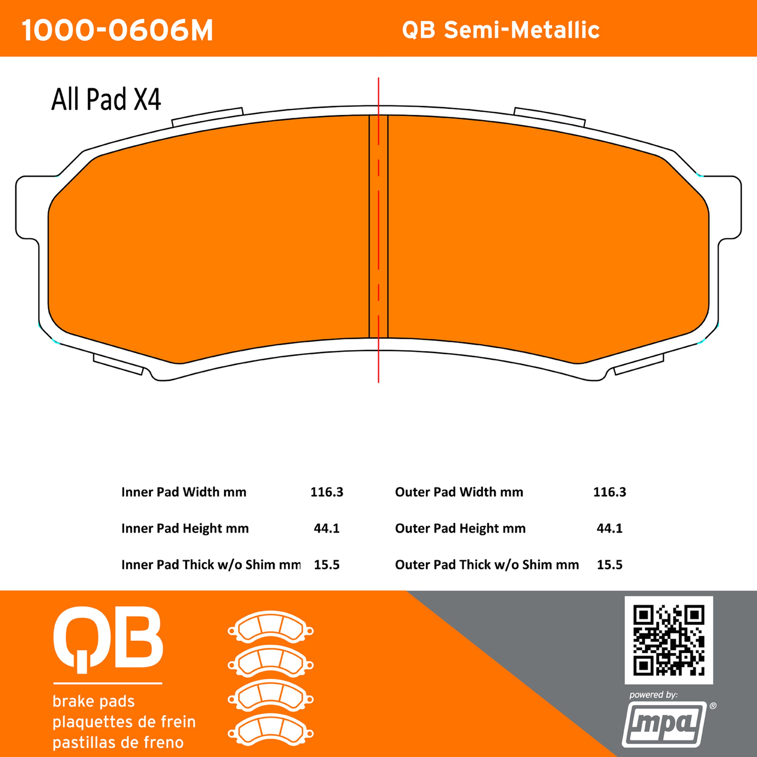 - QB Semi-Metallic Brake Pads