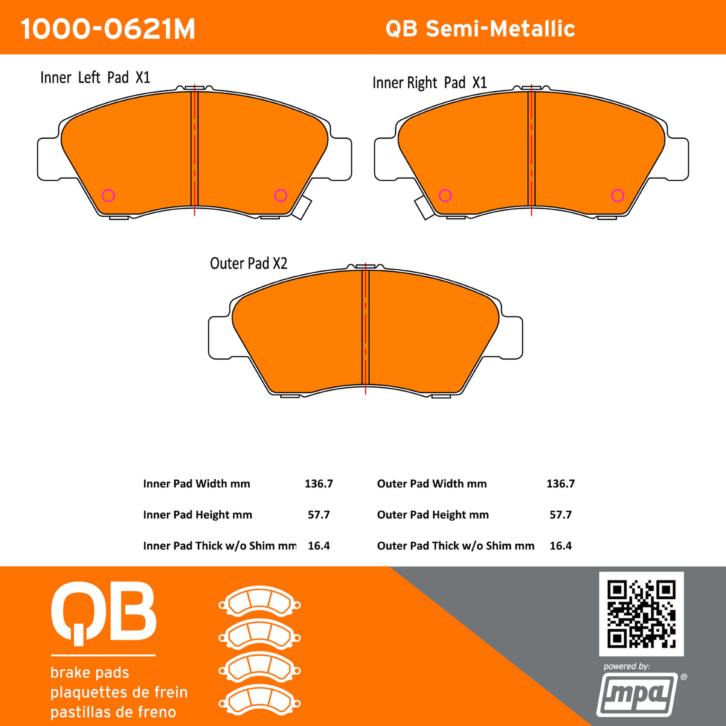 - QB Brake pads deliver like-new stopping power with minimal brake dust and noise.