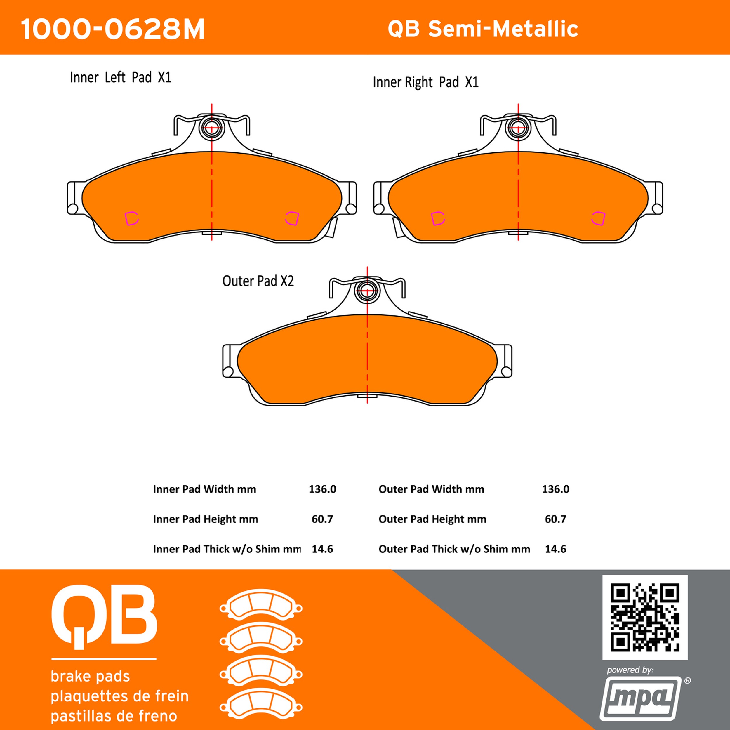 - QB Brake pads deliver like-new stopping power with minimal brake dust and noise.