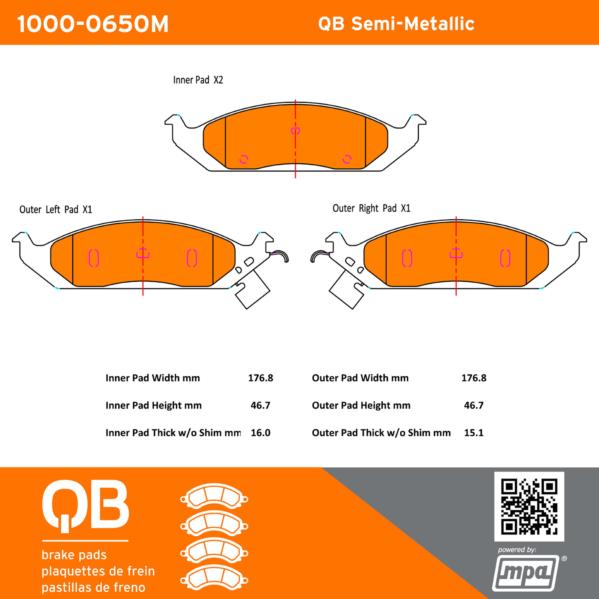 • QB Brake pads deliver like-new stopping power with minimal brake dust and noise.