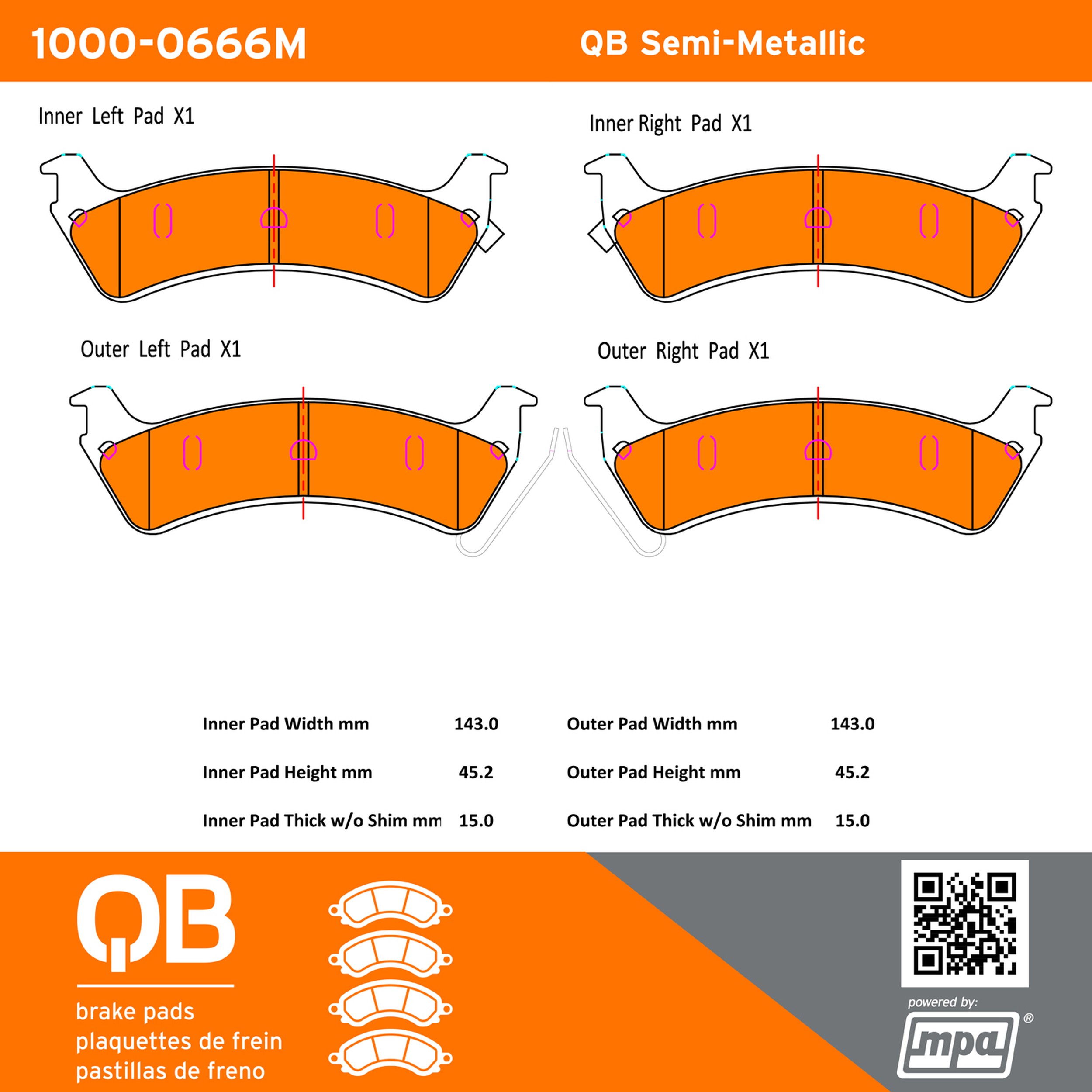 - QB Semi-Metallic Brake Pads