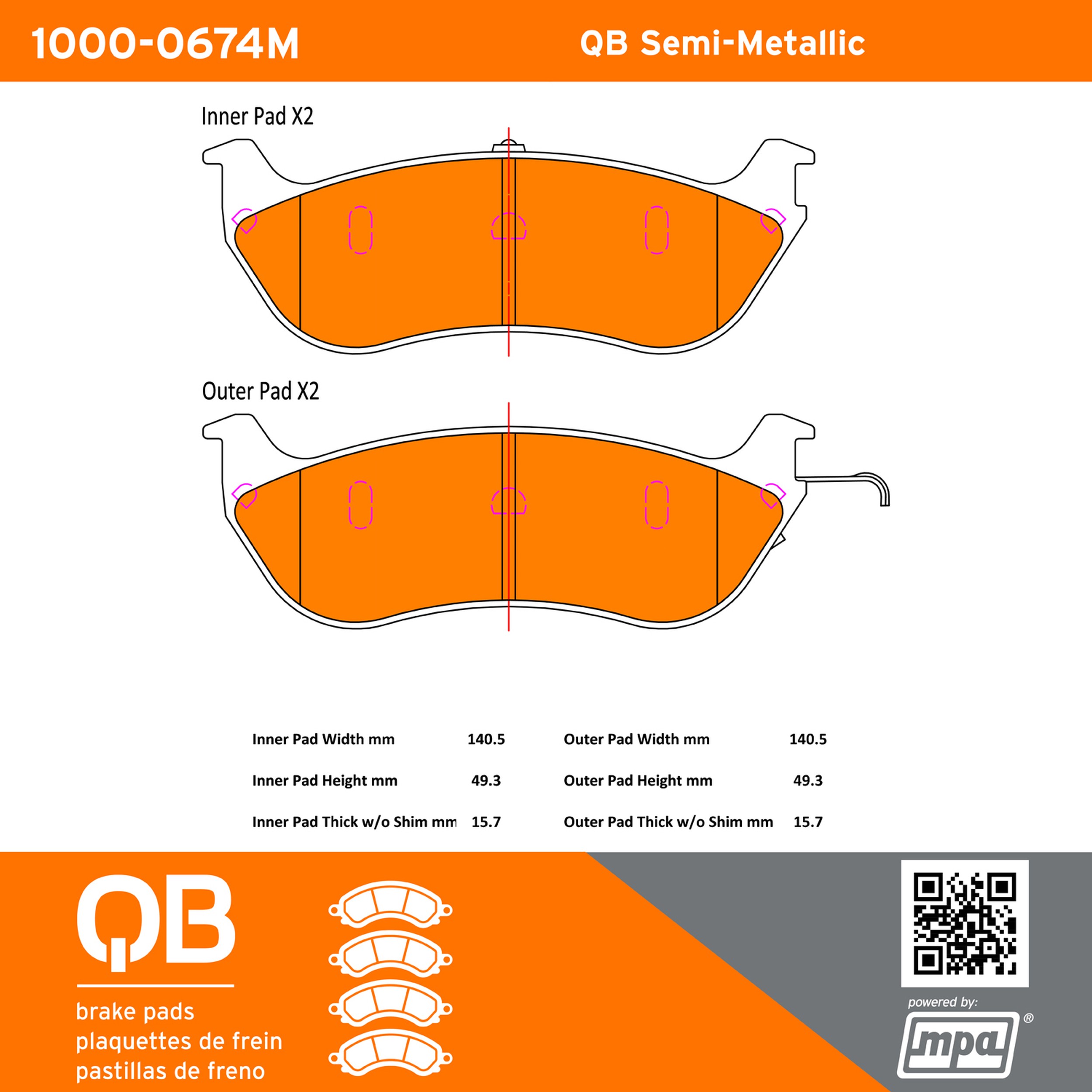- QB Semi-Metallic Brake Pads