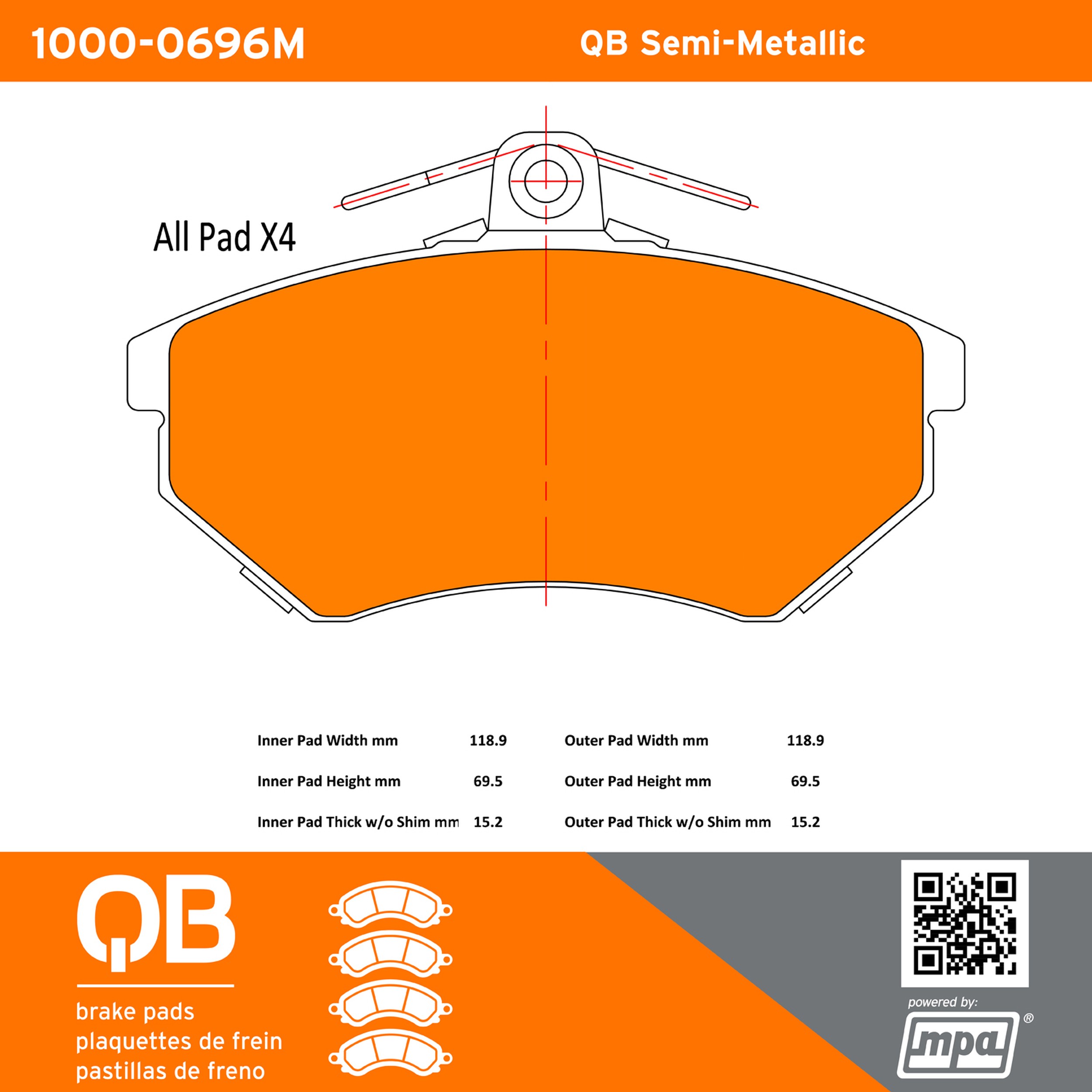 - QB Semi-Metallic Brake Pads