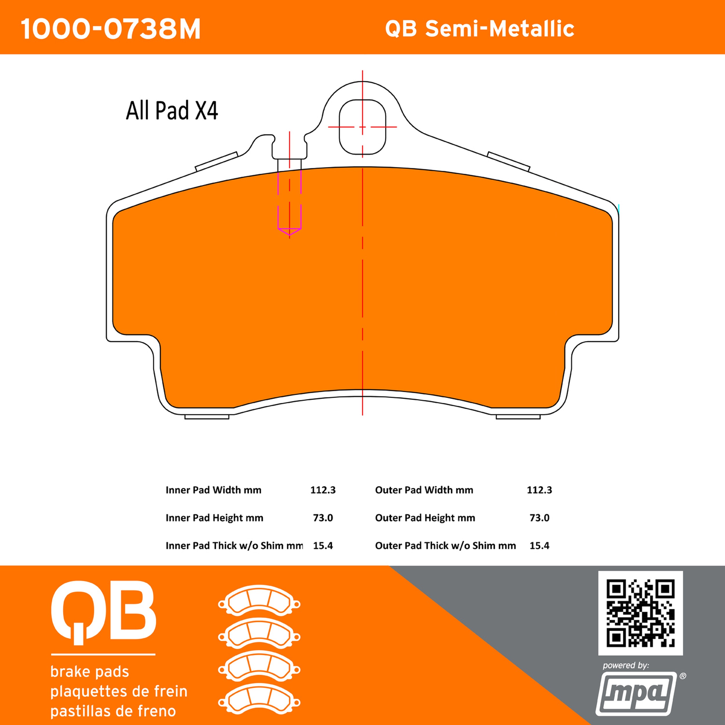 - QB Semi-Metallic Brake Pads