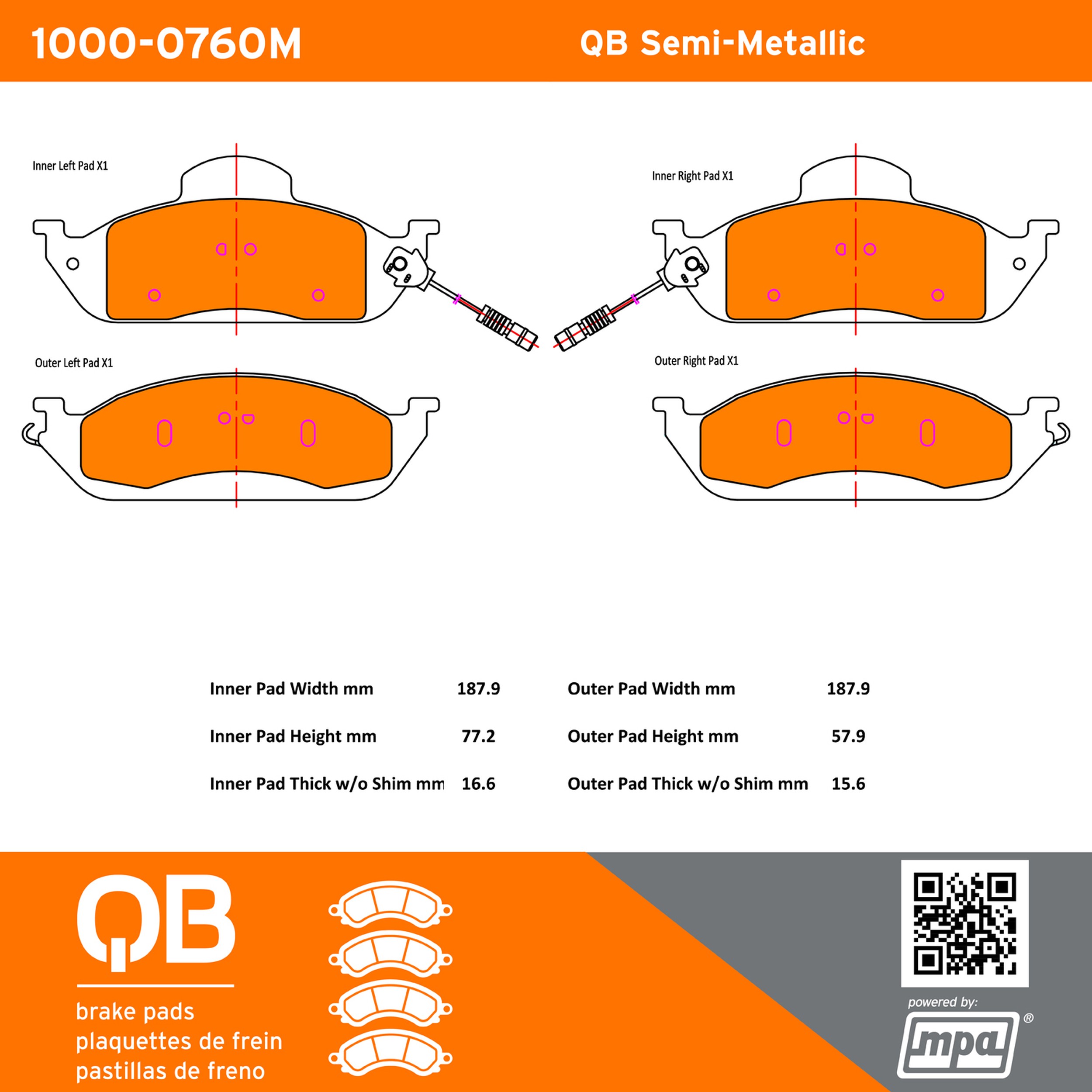 - QB Semi-Metallic Brake Pads