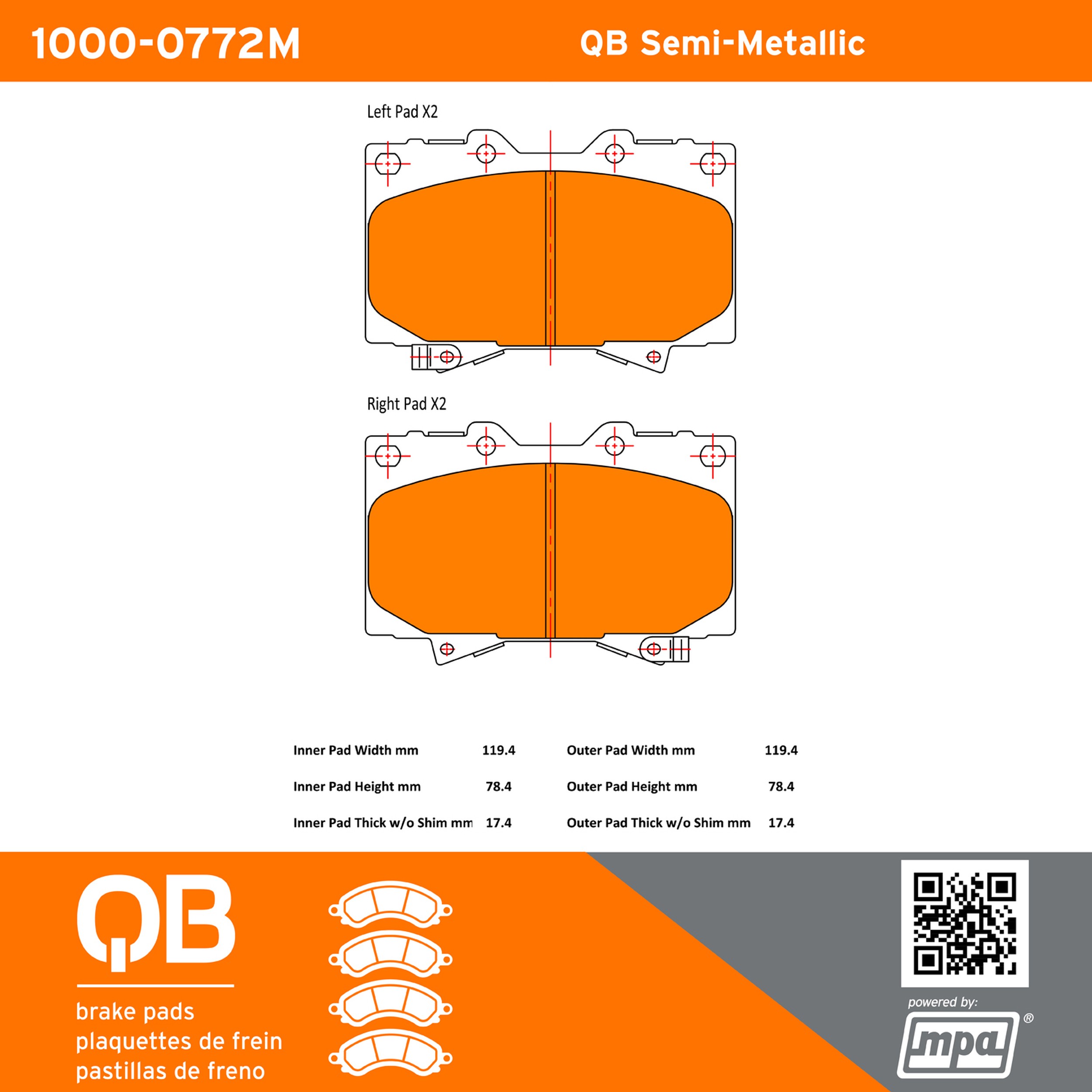 - QB Brake pads deliver like-new stopping power with minimal brake dust and noise.