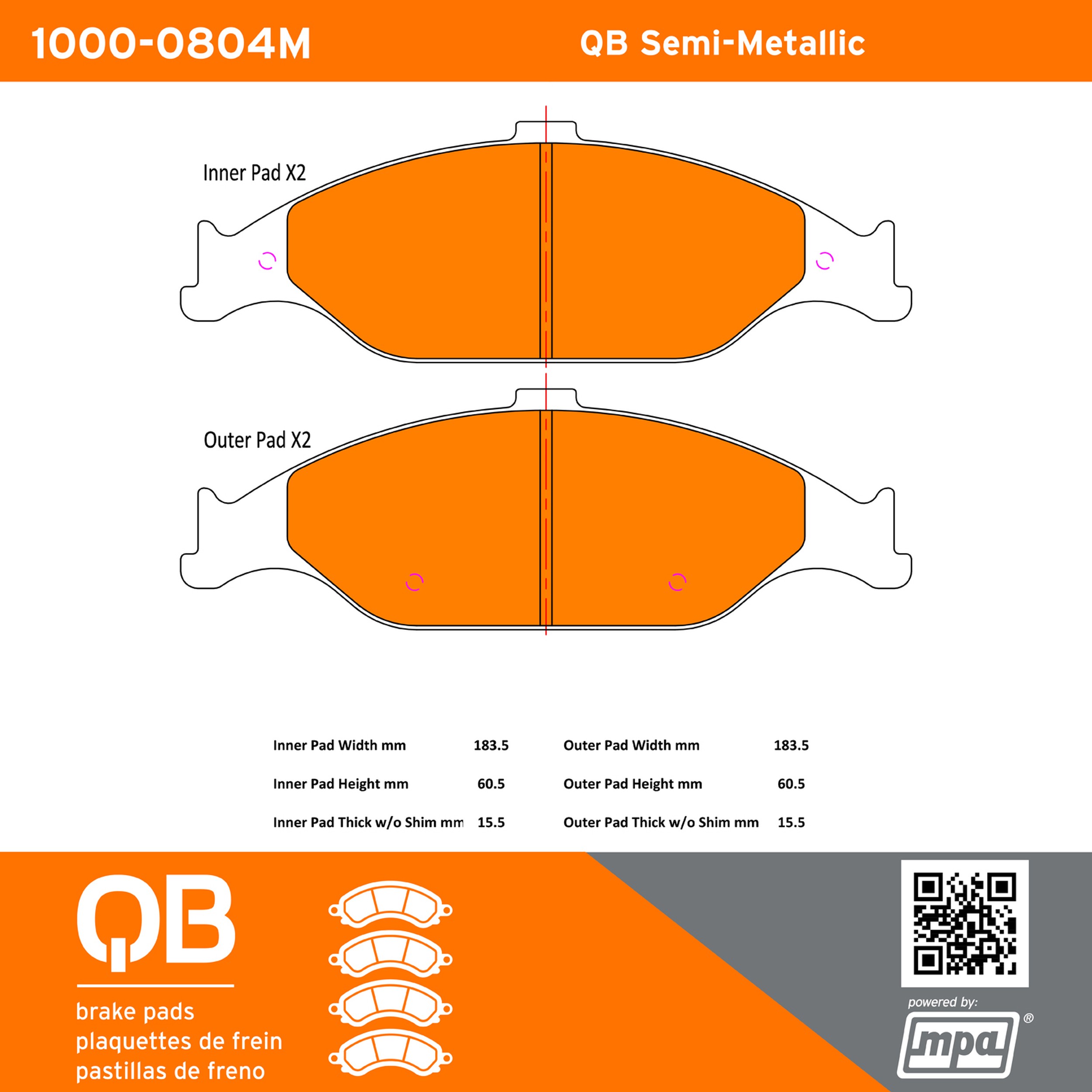 - QB Brake pads deliver like-new stopping power with minimal brake dust and noise.