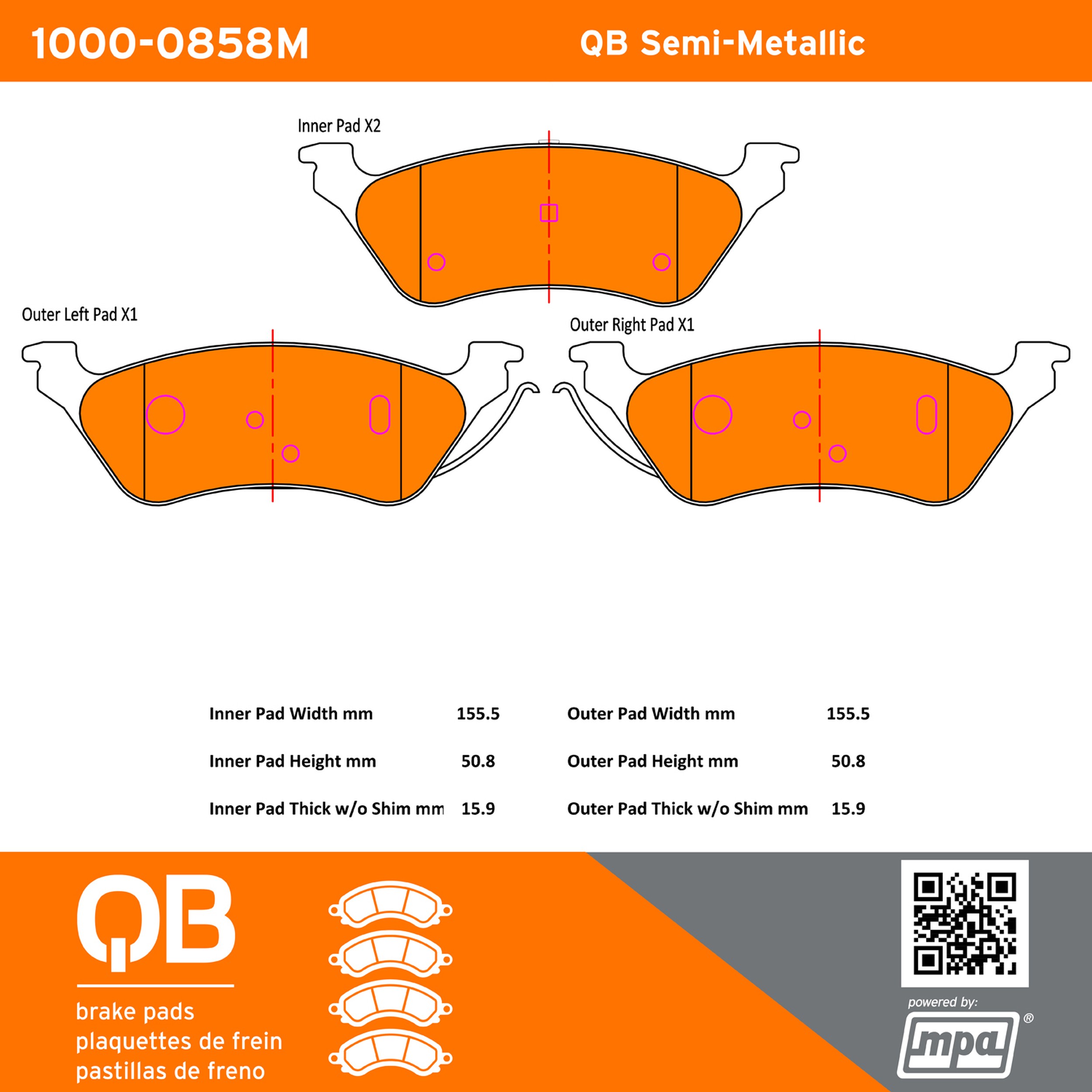- QB Brake pads deliver like-new stopping power with minimal brake dust and noise.