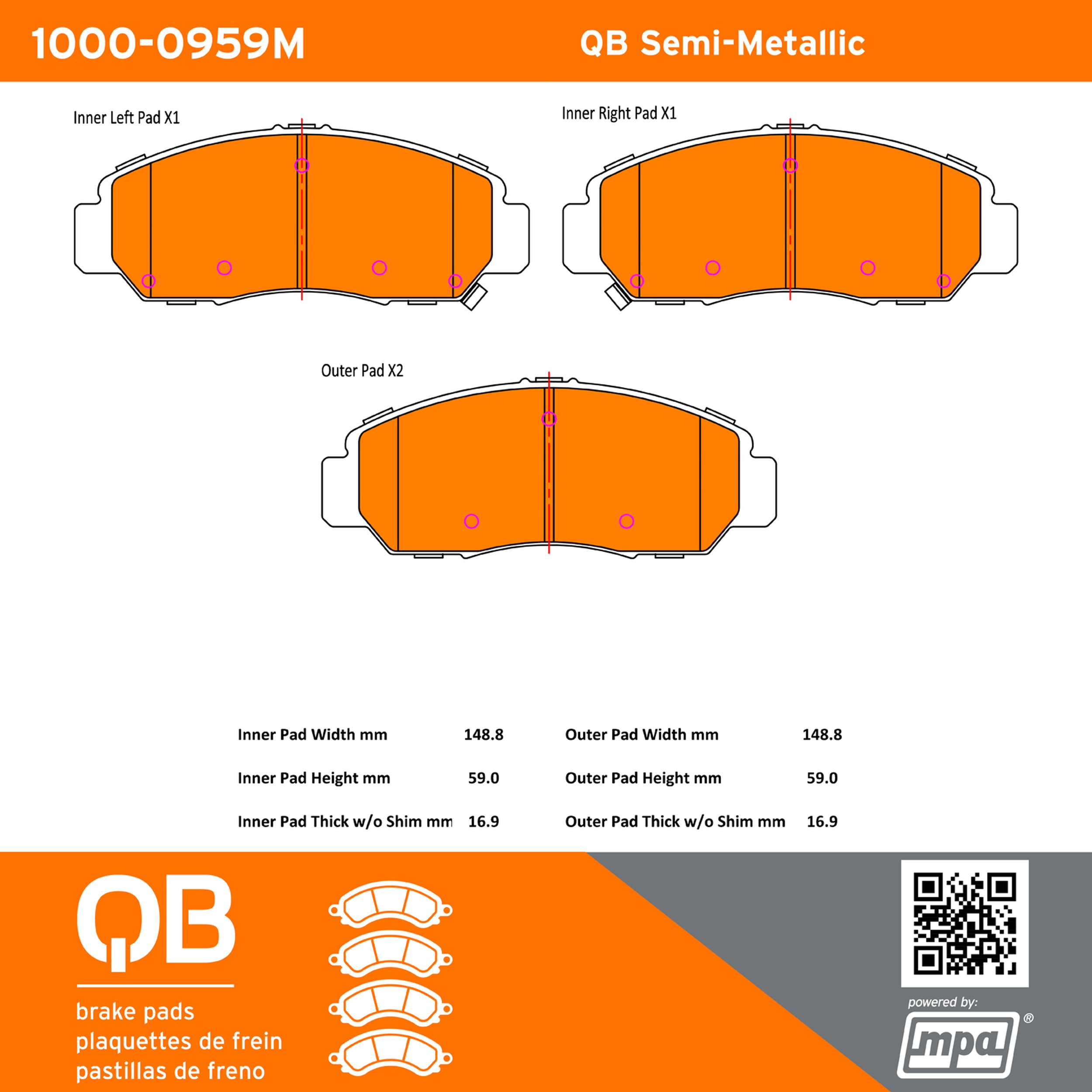 - QB Brake pads deliver like-new stopping power with minimal brake dust and noise.
